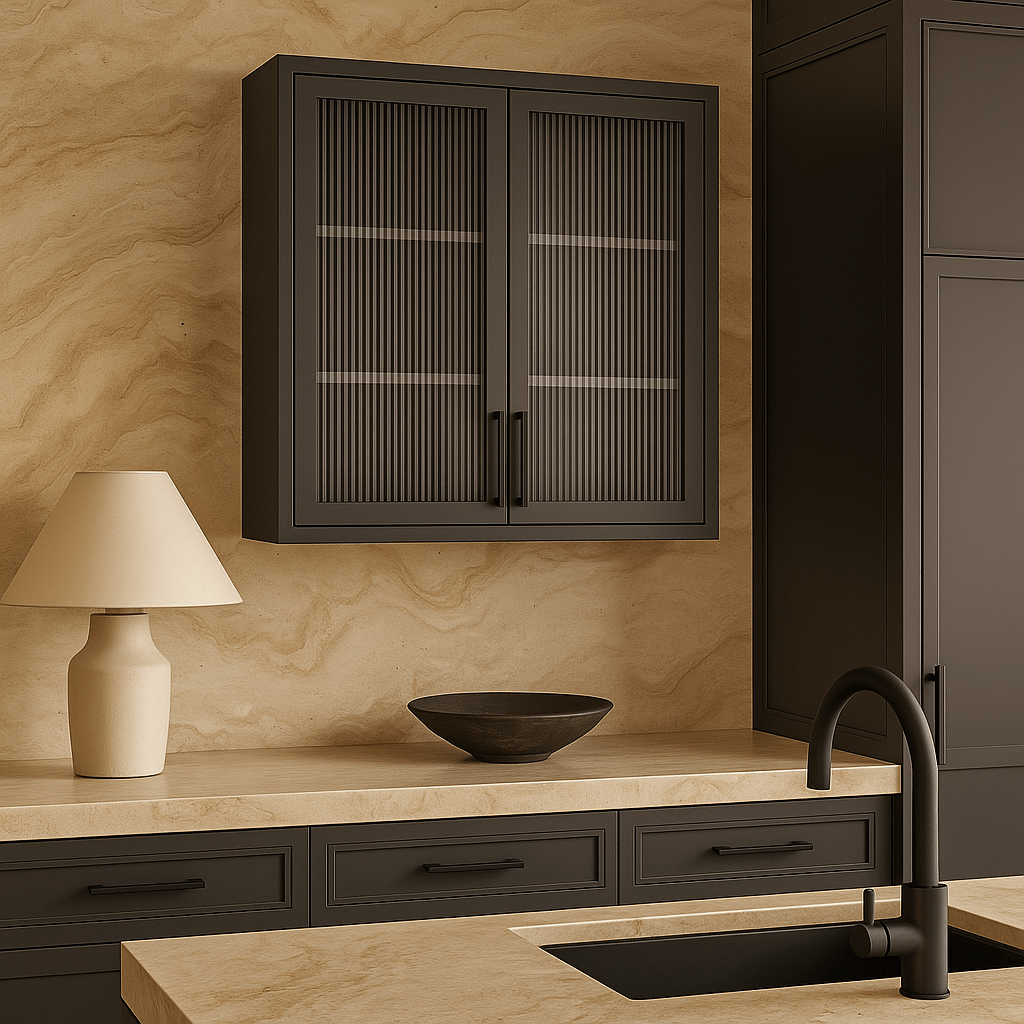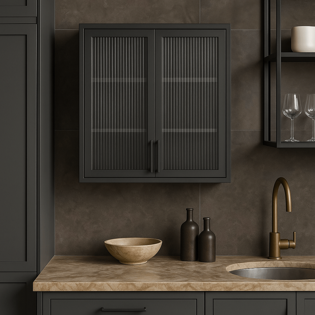 This cabinet is a masterpiece of functional design and aesthetic appeal. Its sleek black finish and hazy tempered glass doors create a sophisticated look that complements any decor. Perfect for showcasing your finest items or organizing essentials, it transforms storage into an art form. Pair it with modern or vintage accents to create a harmonious and stylish environment.