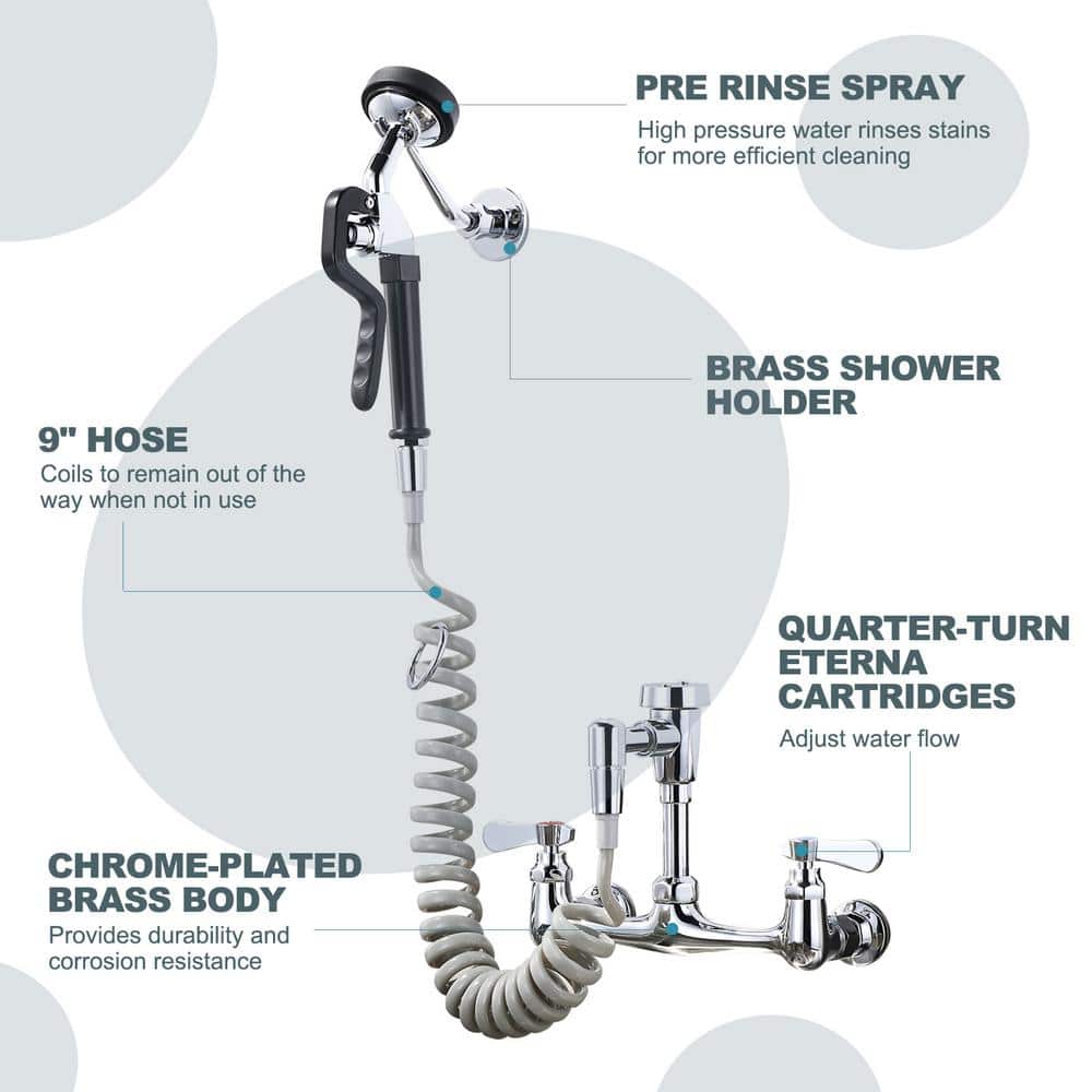 Experience unmatched durability and functionality with the ARCORA Commercial Wall Mounted Double Handle Pet Grooming Faucet in chrome. Crafted from solid brass with a multi-layer chrome finish, this faucet offers exceptional rust and corrosion resistance while providing powerful and precise water flow control. Perfect for professional grooming setups and versatile utility use.