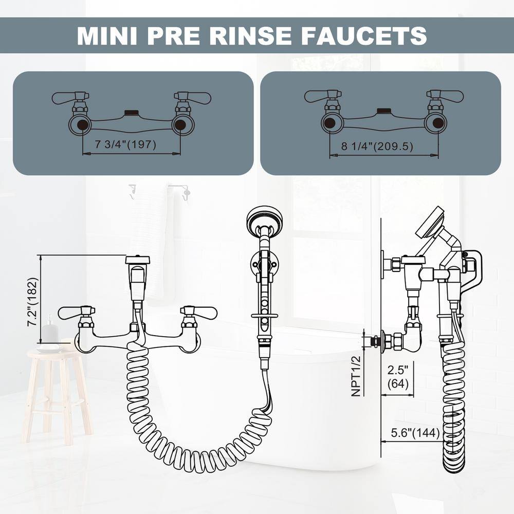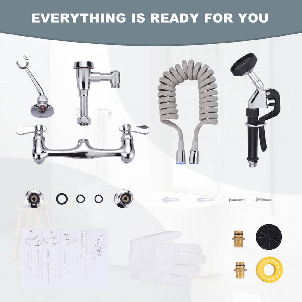 ARCORA Commercial Wall Mounted Double Handle Pet Grooming Faucet in Chrome