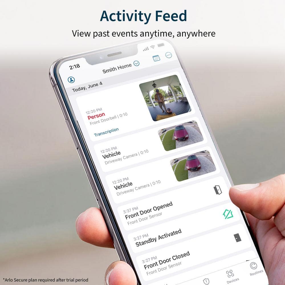 Q: What does a subscription include? A: The Arlo Secure plan offers cloud storage, people/package/vehicle detection, and emergency response. A trial is included, but continued use requires a paid subscription.