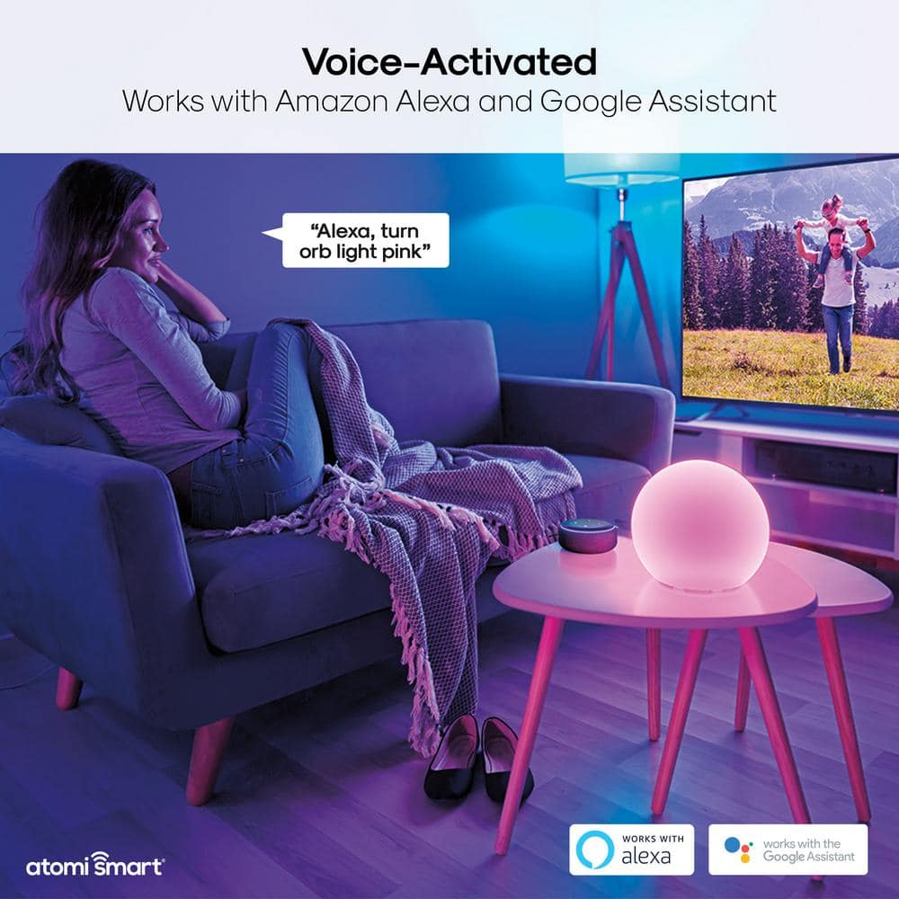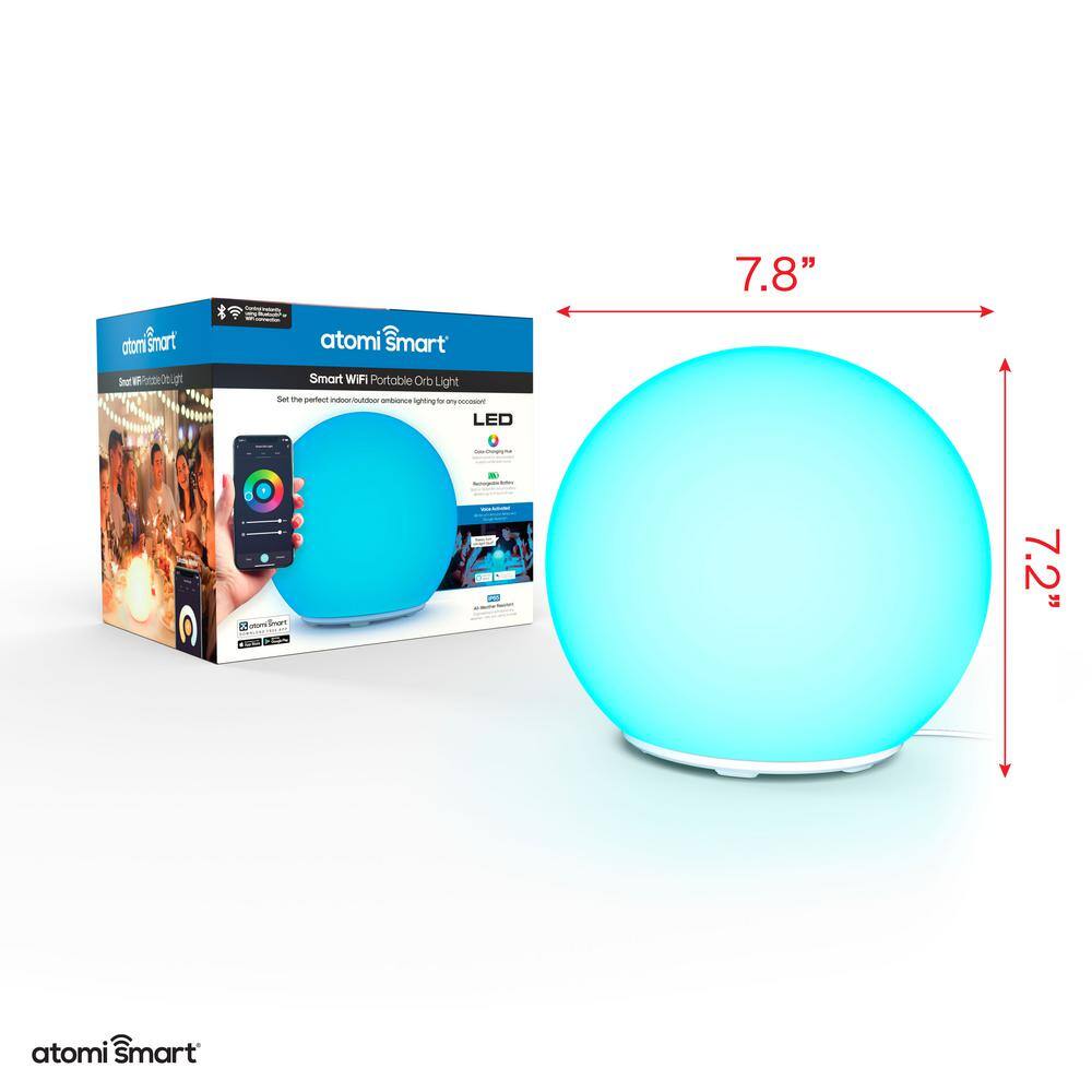 atomi smart 7 in. Multi-Color Smart Wi-Fi Portable LED Orb Lamp with Smart Wi-Fi Control