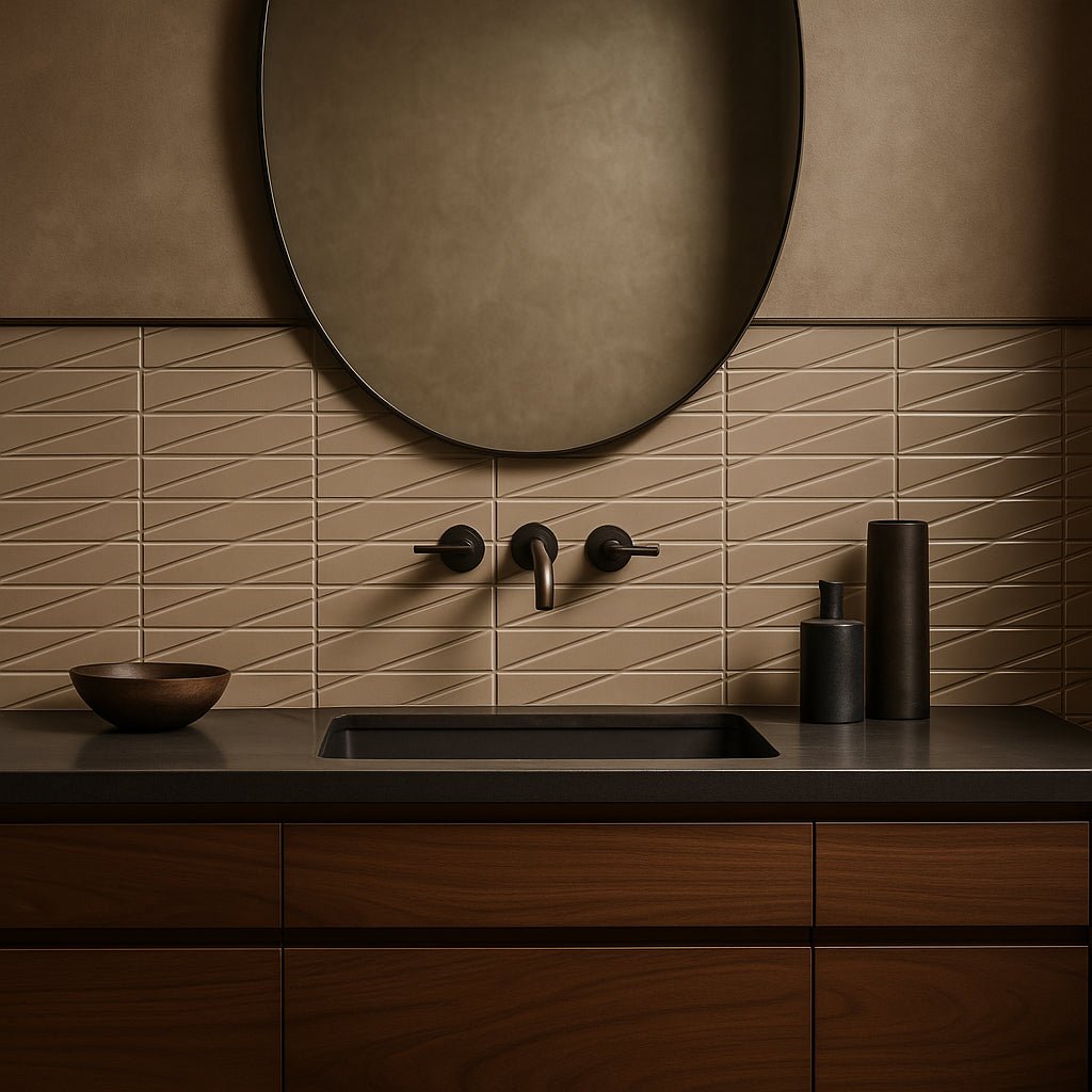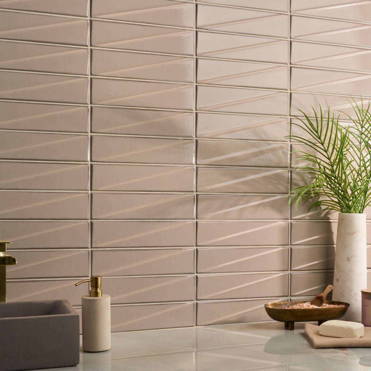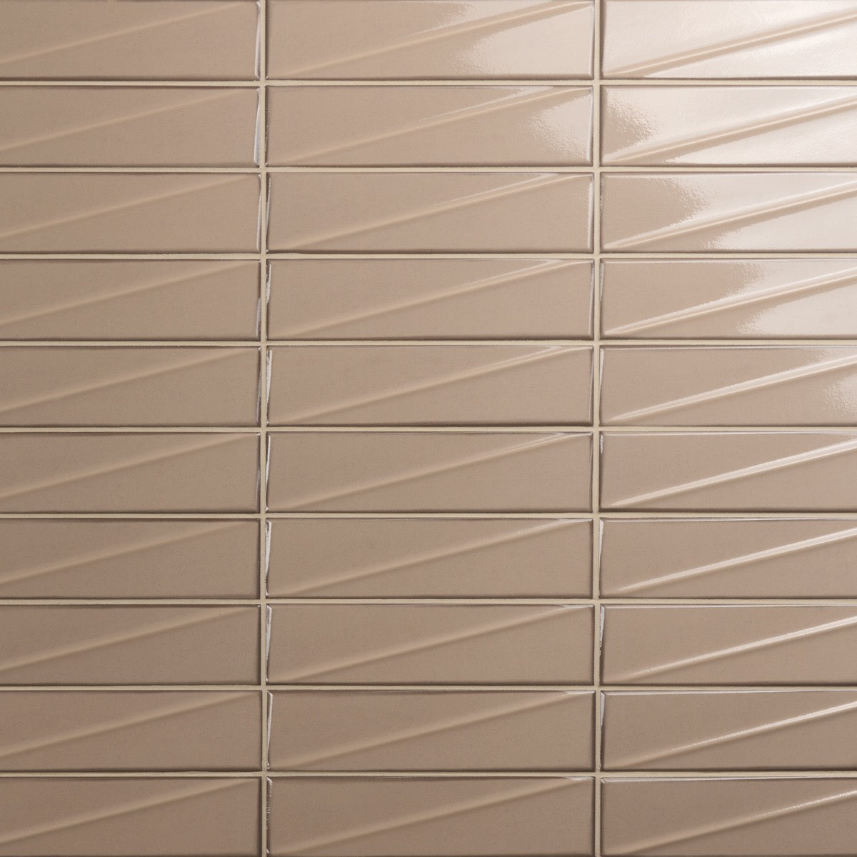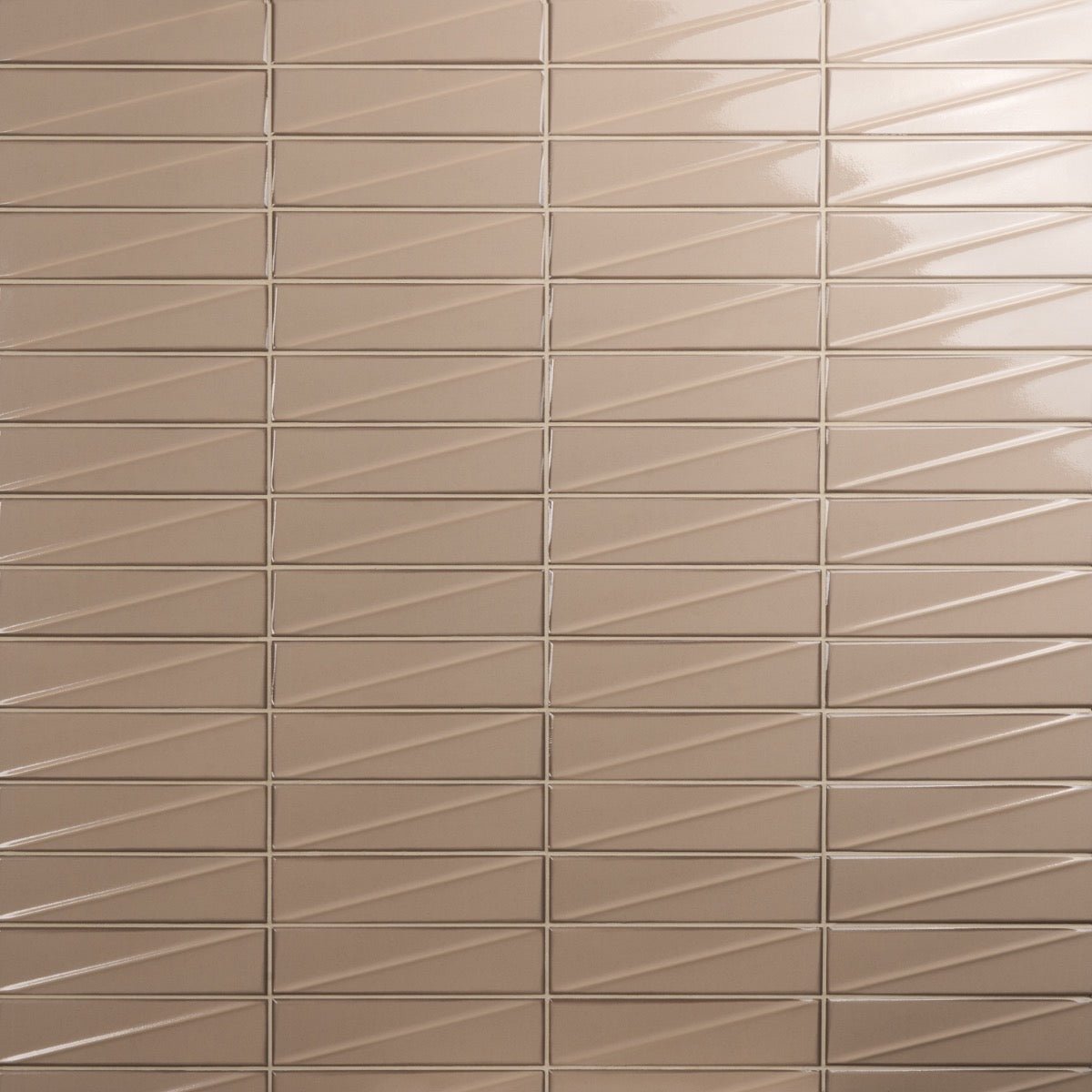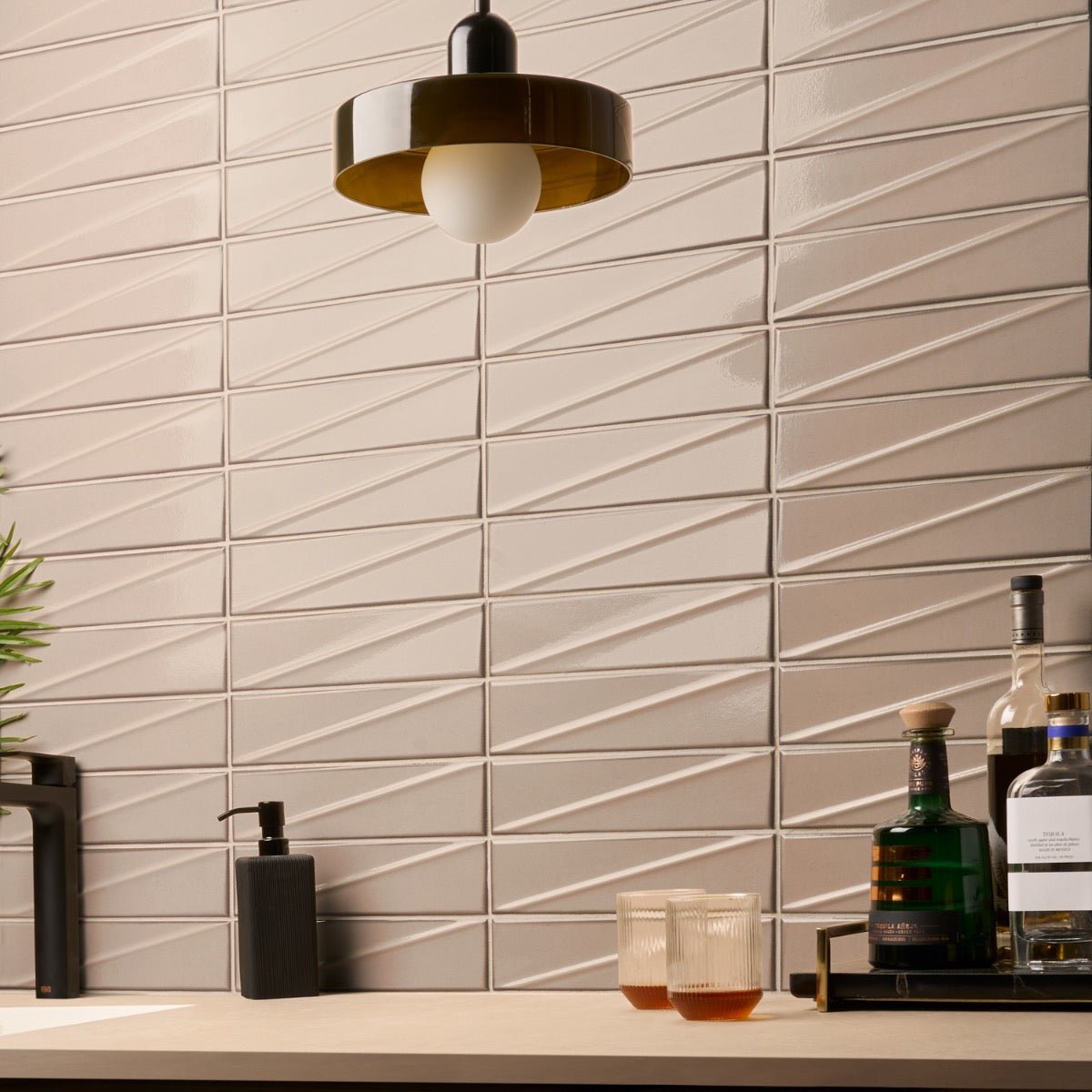 The Axelle Dune Beige 3D Glossy Ceramic Tile combines timeless subway design with modern 3D details, offering a sandy beige colorway and glossy finish for a sophisticated look.