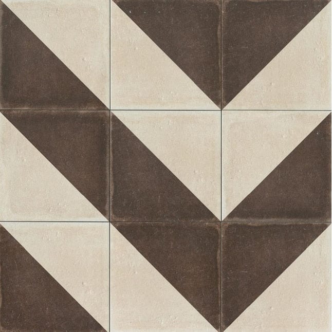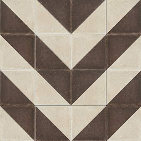 This patterned porcelain evokes hand-painted cement motifs, lending a soulful, rustic cadence to contemporary rooms. The honed finish softens the graphic geometry, creating a layered, lived-in elegance. Lay it in chevron arrangements across a kitchen floor or frame a bath wall for captivating movement. A refined essential for crafting spaces that feel both collected and luxuriously modern.