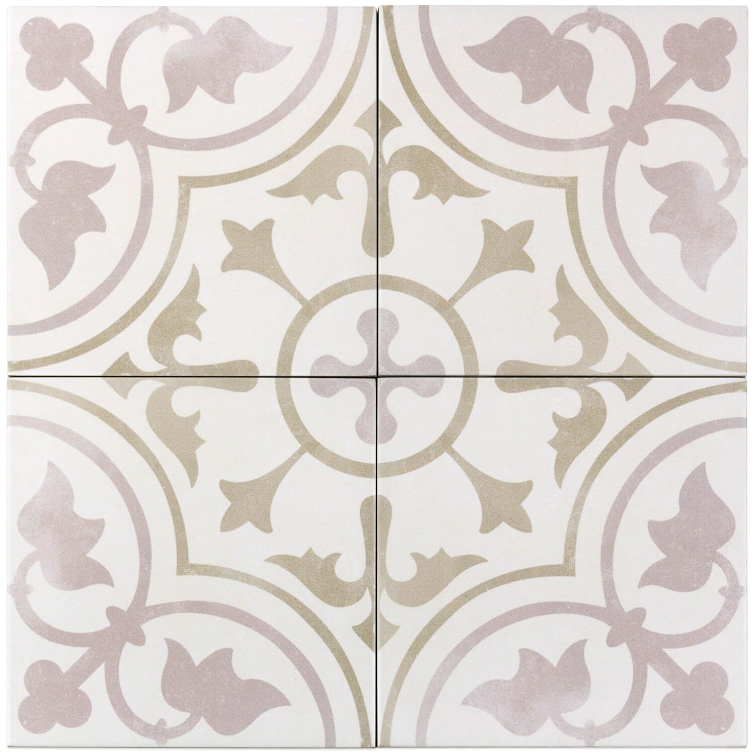 The Bella Tate Beige Porcelain Tile features a timeless encaustic-inspired design in a matte finish. Perfect for adding a touch of Mediterranean charm to any space, this tile is versatile for both residential and commercial use.
