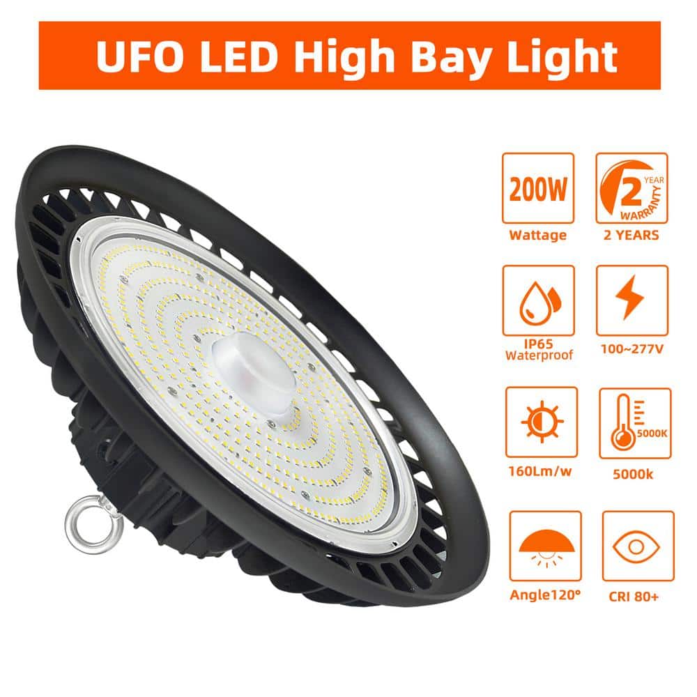 Bieuoram's 200W LED High Bay Light transforms your space with its industrial charm and powerful beam. The sleek, UFO-inspired design adds a modern touch to any warehouse or gymnasium, bringing both style and practicality to your lighting scheme. Position these luminaries above workstations or in high-ceilinged areas to amplify the architectural drama. Essential for those who demand both performance and aesthetics, this fixture is a beacon of modern lighting innovation.