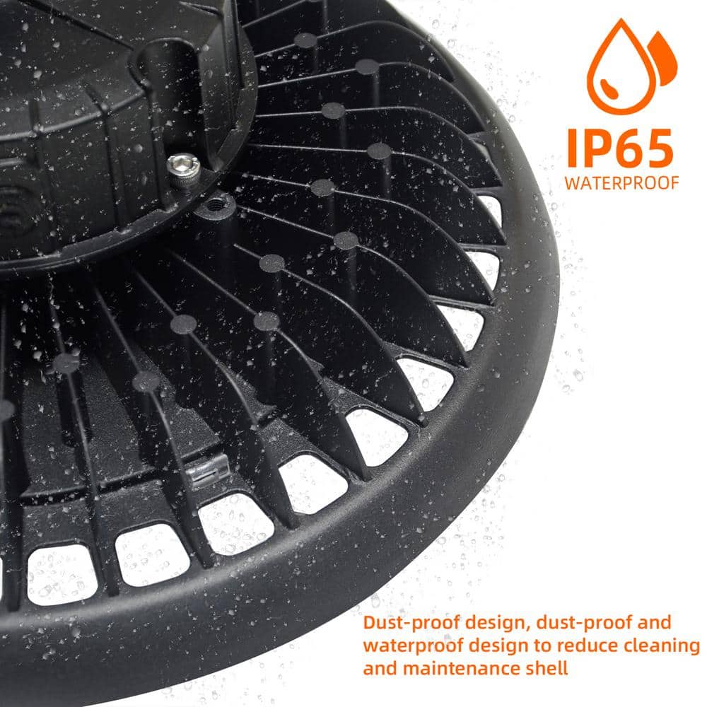 Q: What is the recommended mounting height for these lights? A: These high bay lights are recommended to be mounted between 20 ft. to 26 ft. high for optimal light distribution.