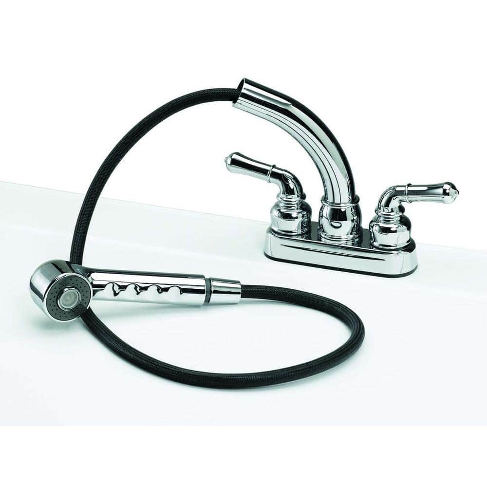 Swivel Faucet with Pull-Out Spout: Provides flexibility with a 24-inch extension for easy washing of large items.