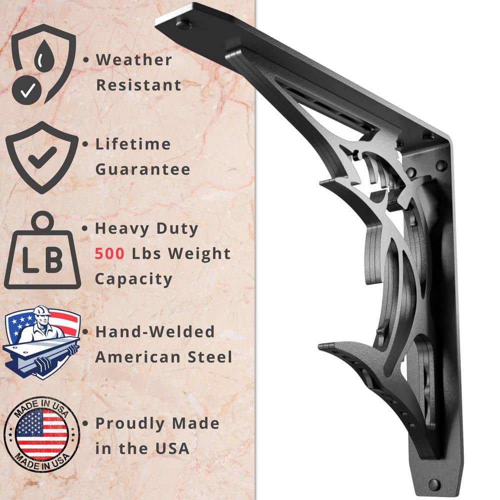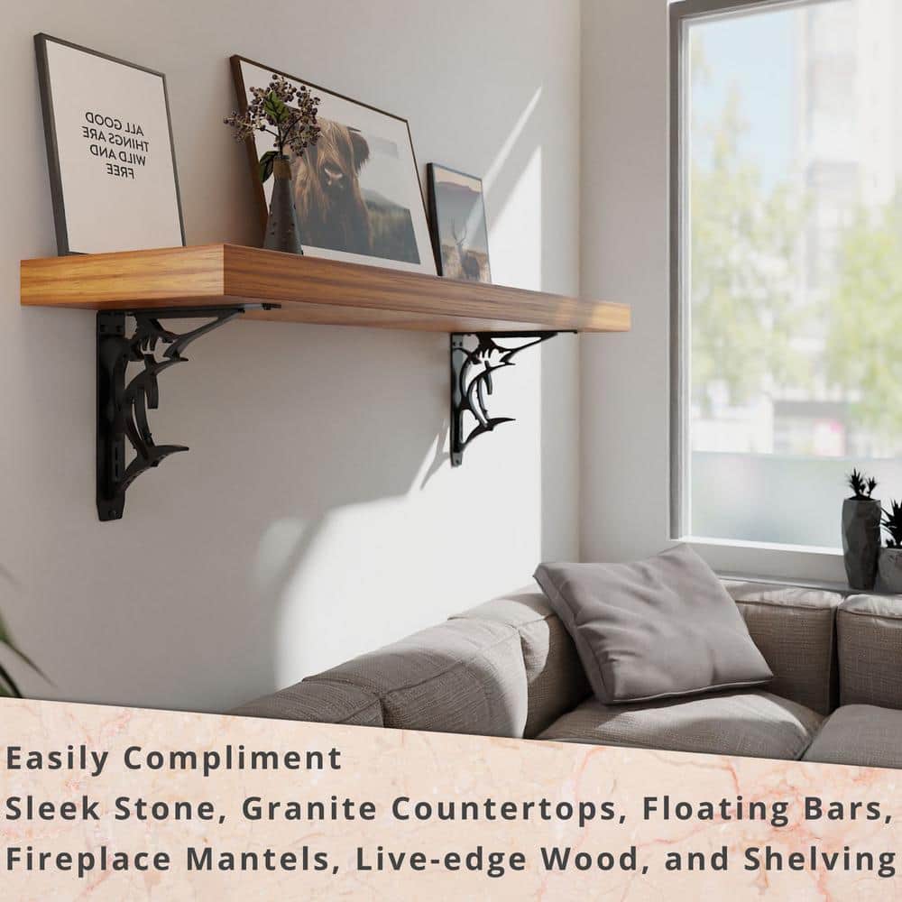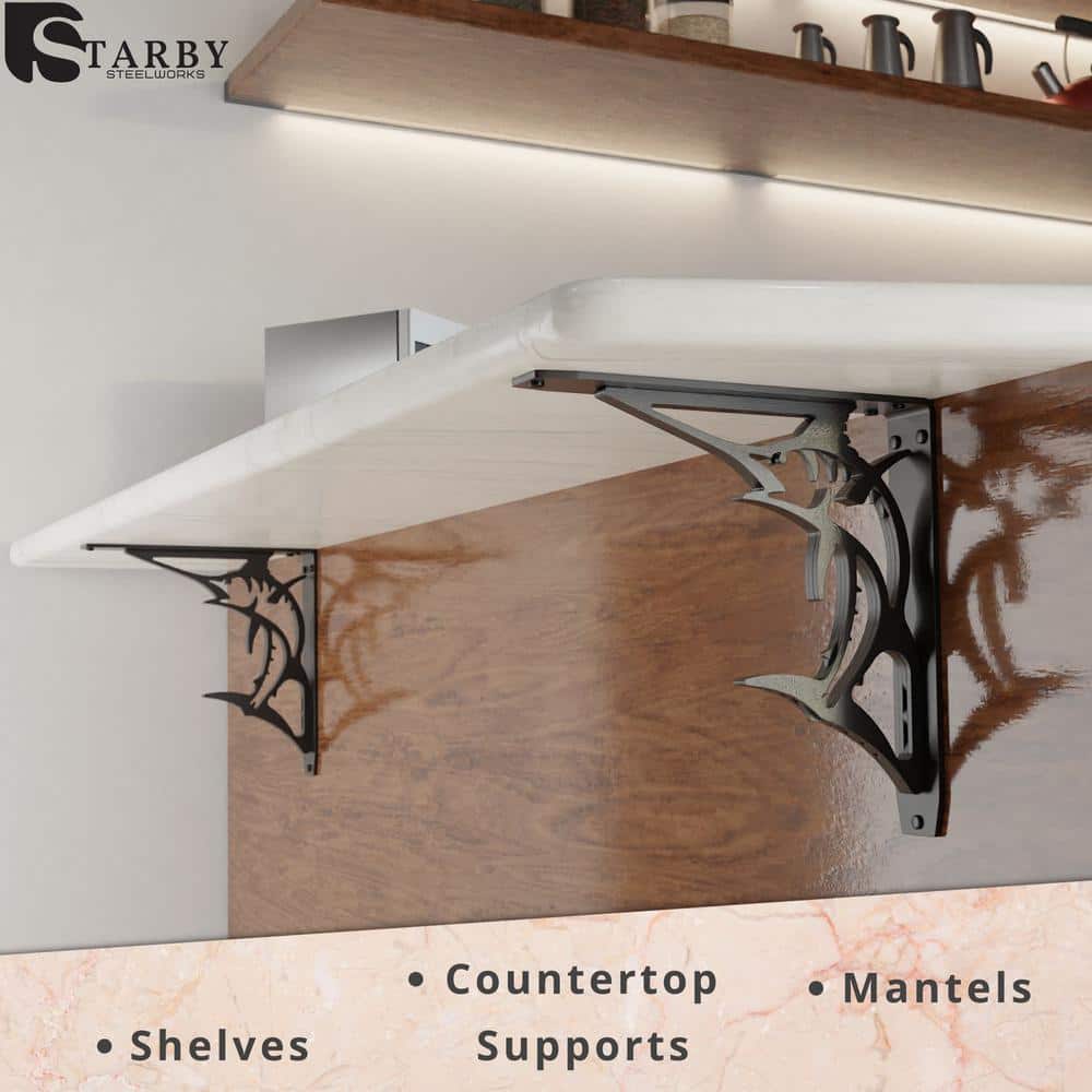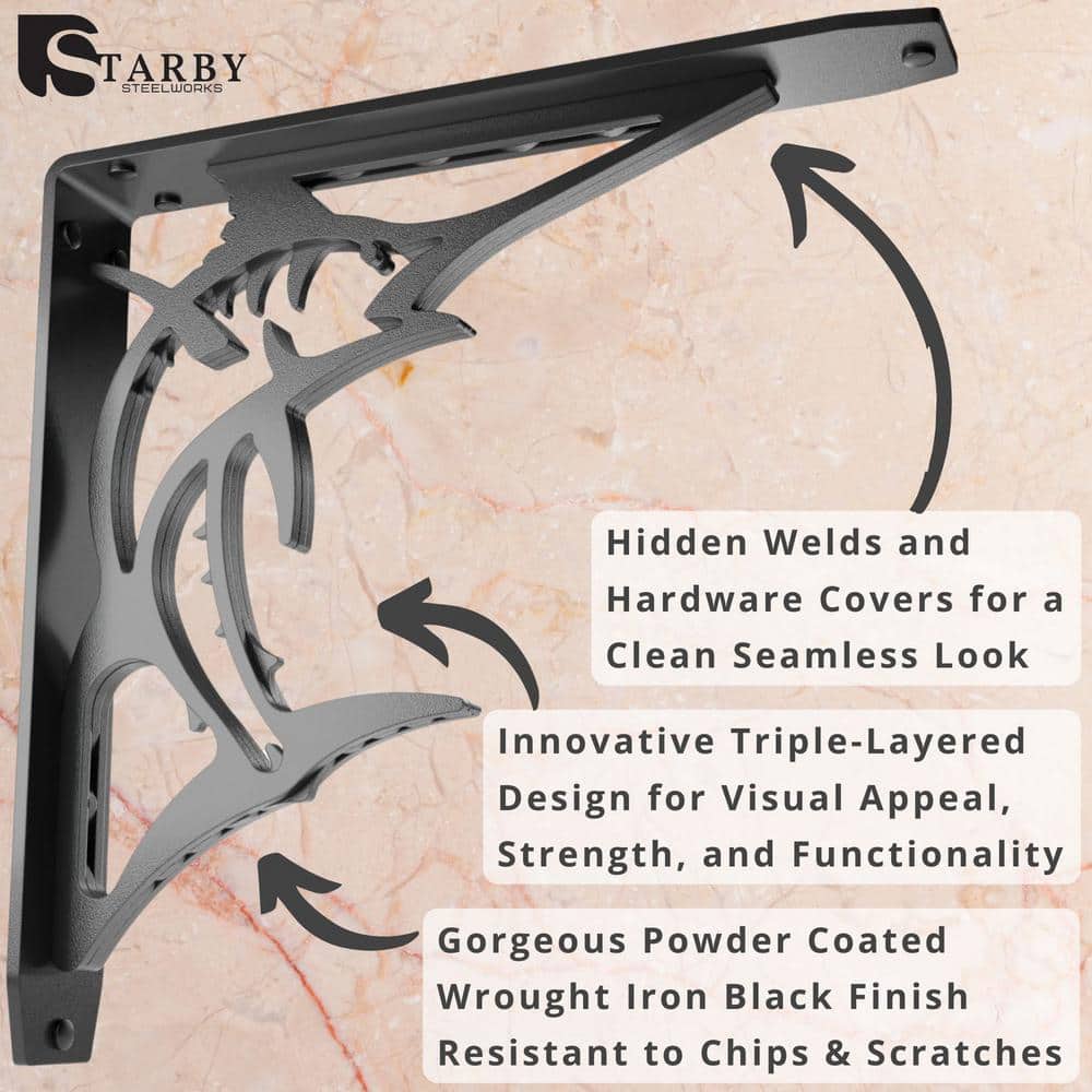 Upgrade your storage solutions with the Starby Billfish 12 in. Black Steel Heavy Duty Floating Shelf Bracket. Engineered from top-grade American steel, these brackets provide unmatched durability with a stunning nature-inspired design, making them perfect for both professional and DIY installations.