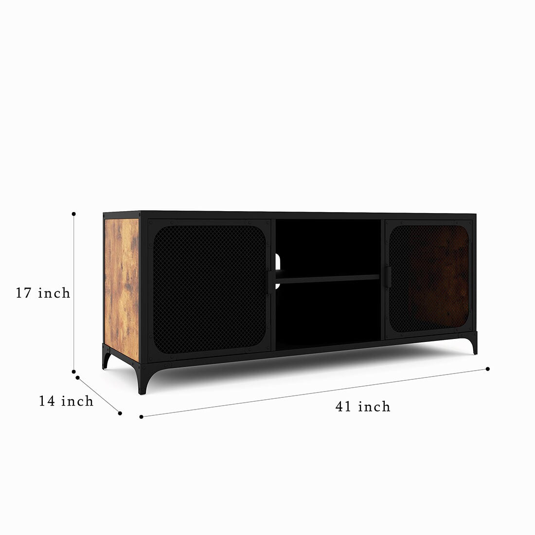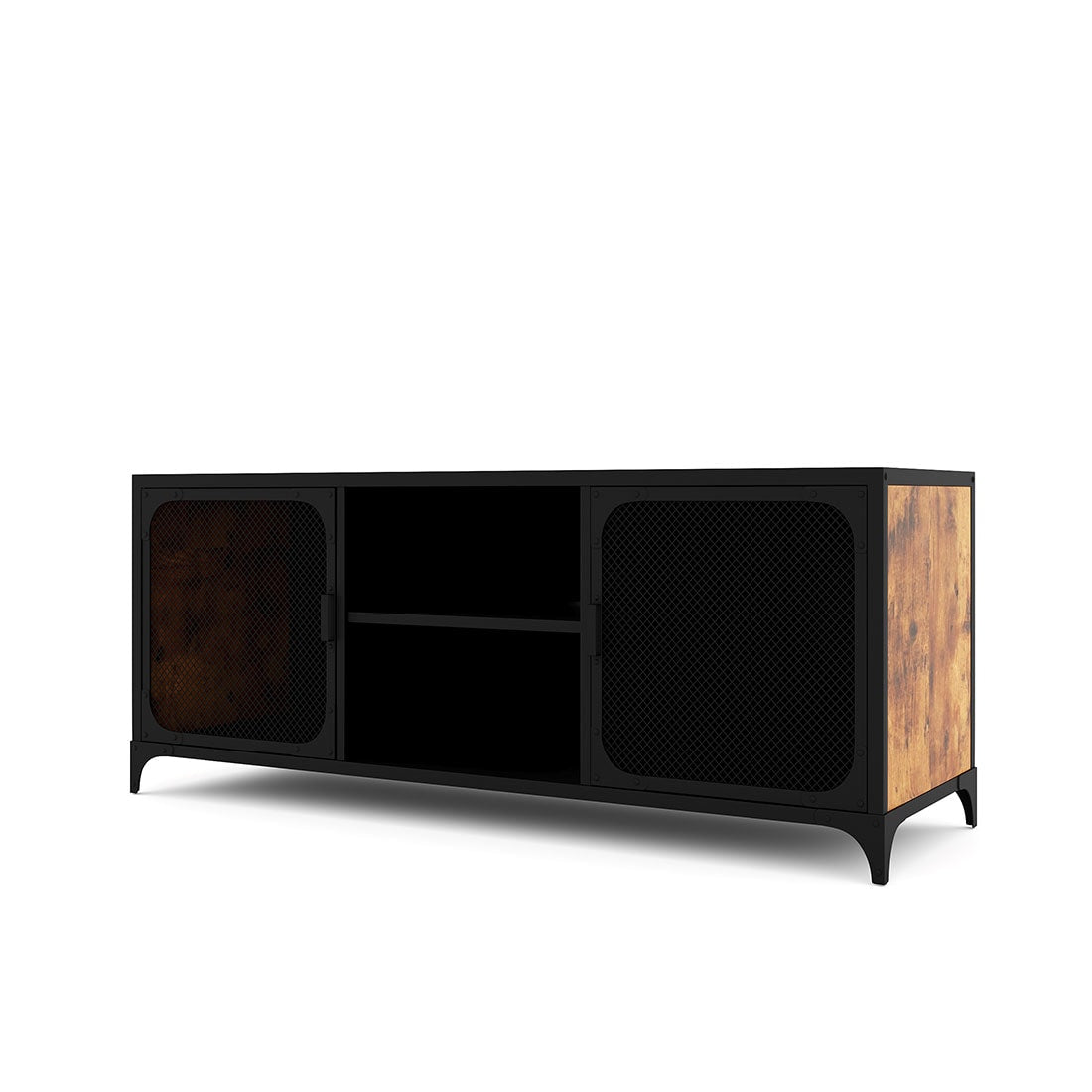 Discover a perfect blend of style and functionality with this Black and Rustic Media Cabinet, crafted from durable stainless steel. Its contemporary design integrates seamlessly into modern spaces, featuring mesh-paneled doors for discreet yet elegant storage.