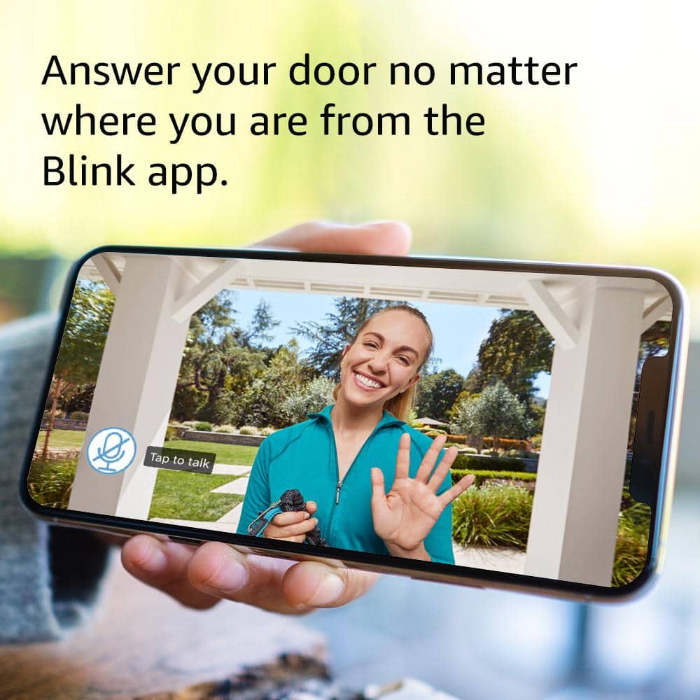 A: You'll receive an instant alert via the Blink Home Monitor app, and you can see, hear, and speak to your visitor directly from your smartphone.