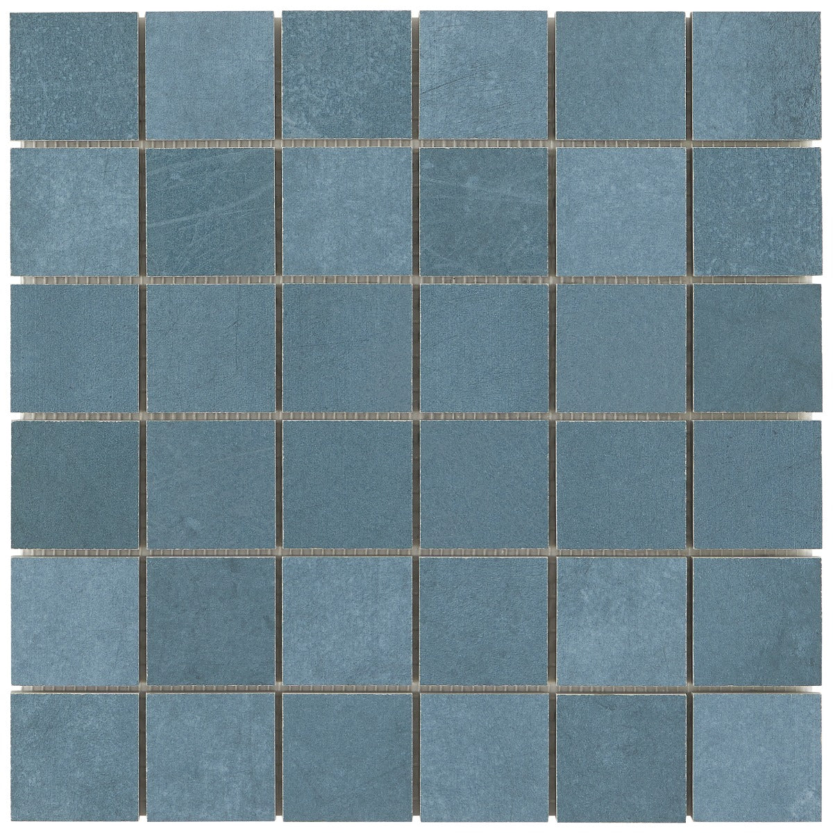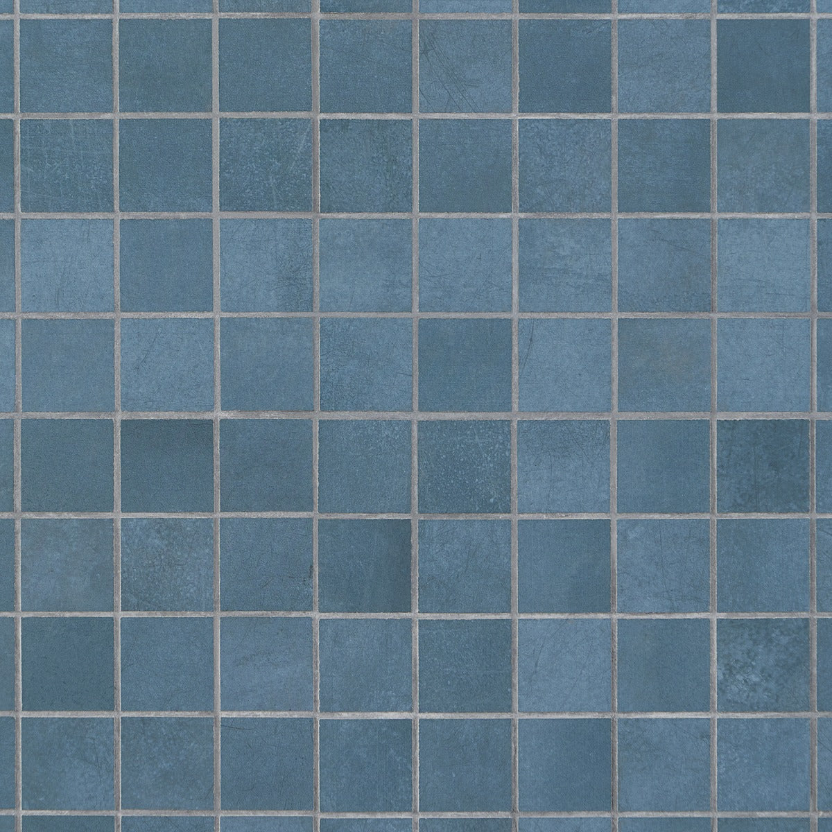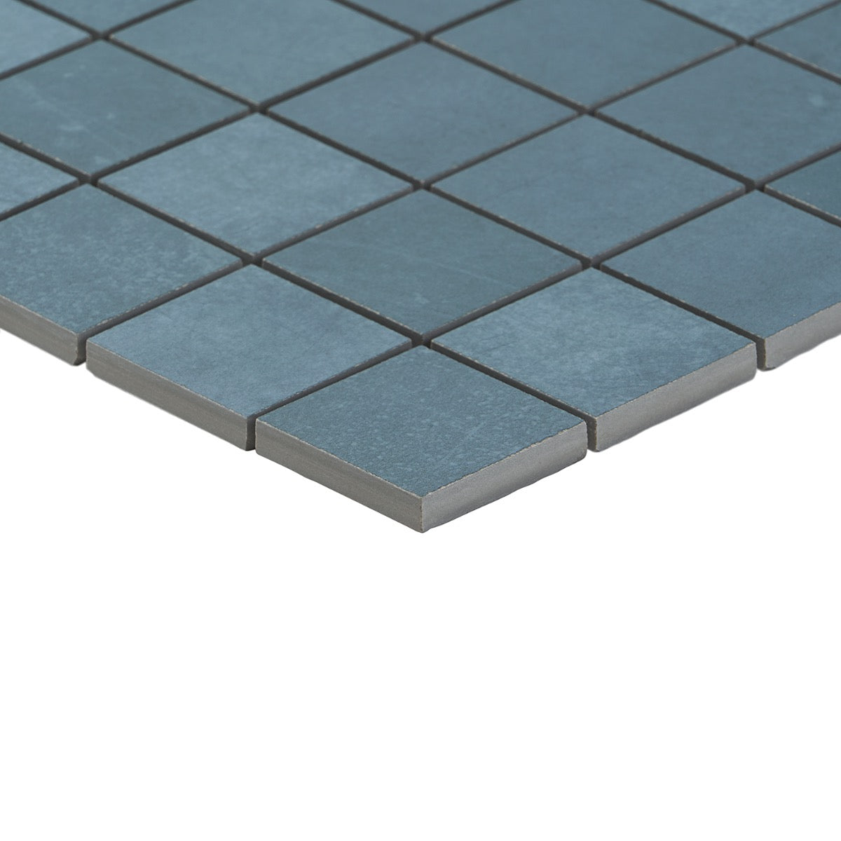 The Bond Indio Blue 2x2 Matte Porcelain Mosaic Tile offers a contemporary industrial design with a striking metallic sheen and opaque oxidation. Perfect for backsplashes, curved areas, and shower floors, this Italian-made tile combines style and practicality.