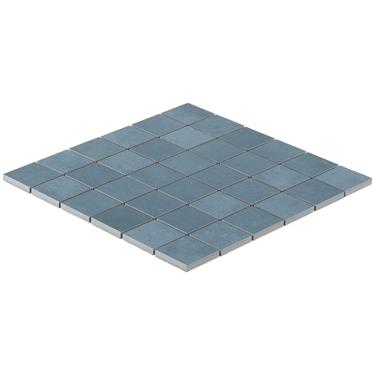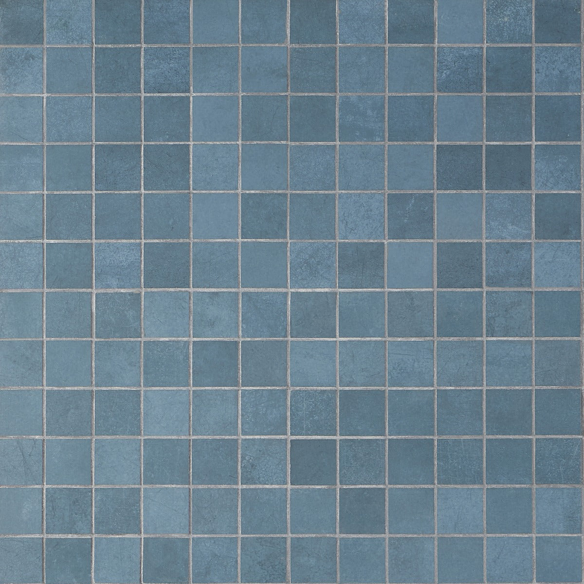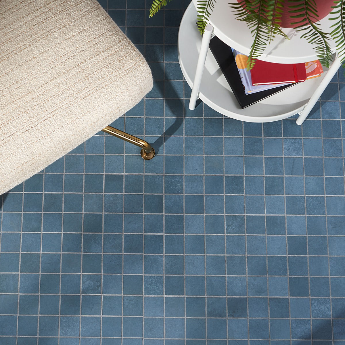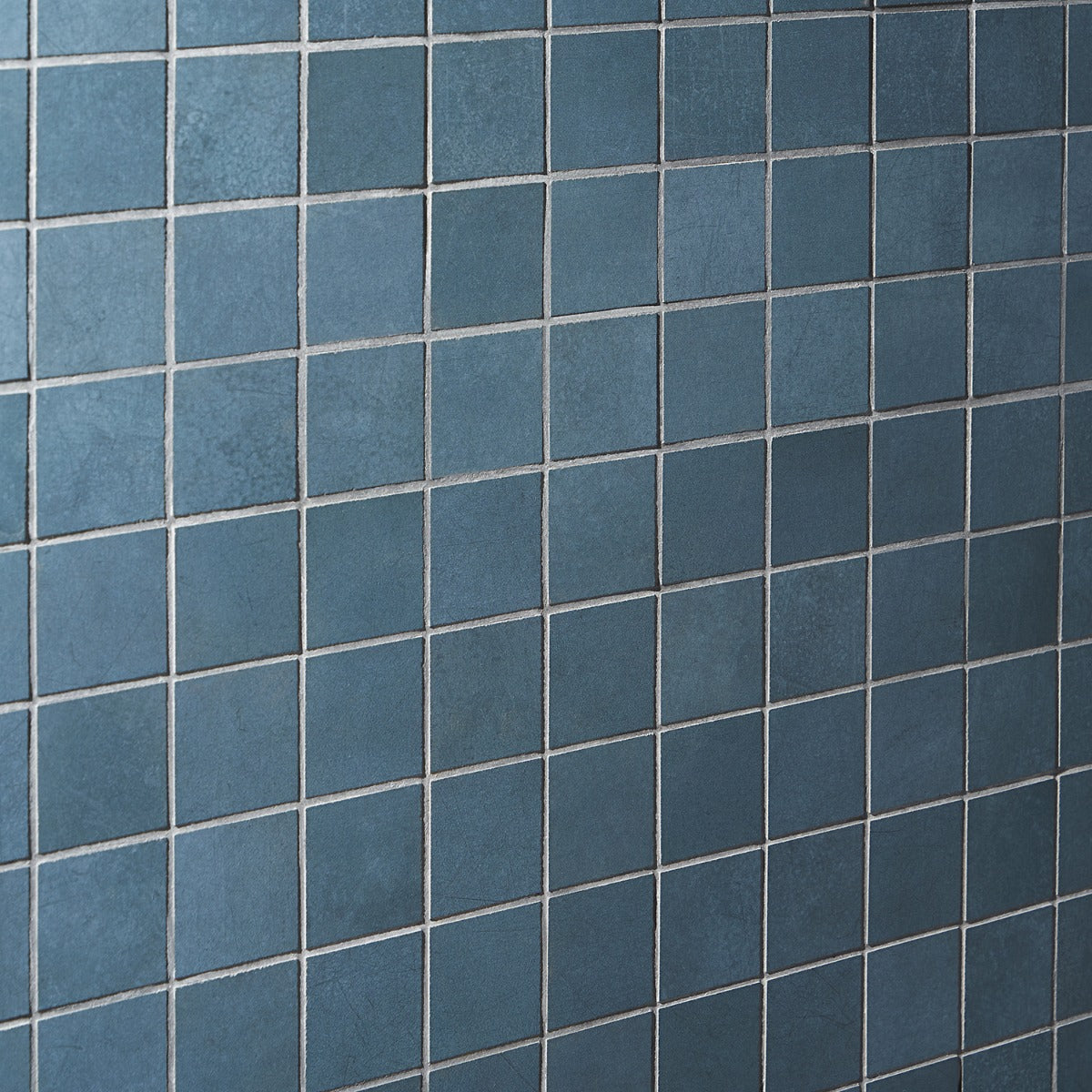 The Bond Indio Blue 2x2 Matte Porcelain Mosaic Tile offers a contemporary industrial design with a striking metallic sheen and opaque oxidation. Perfect for backsplashes, curved areas, and shower floors, this Italian-made tile combines style and practicality.