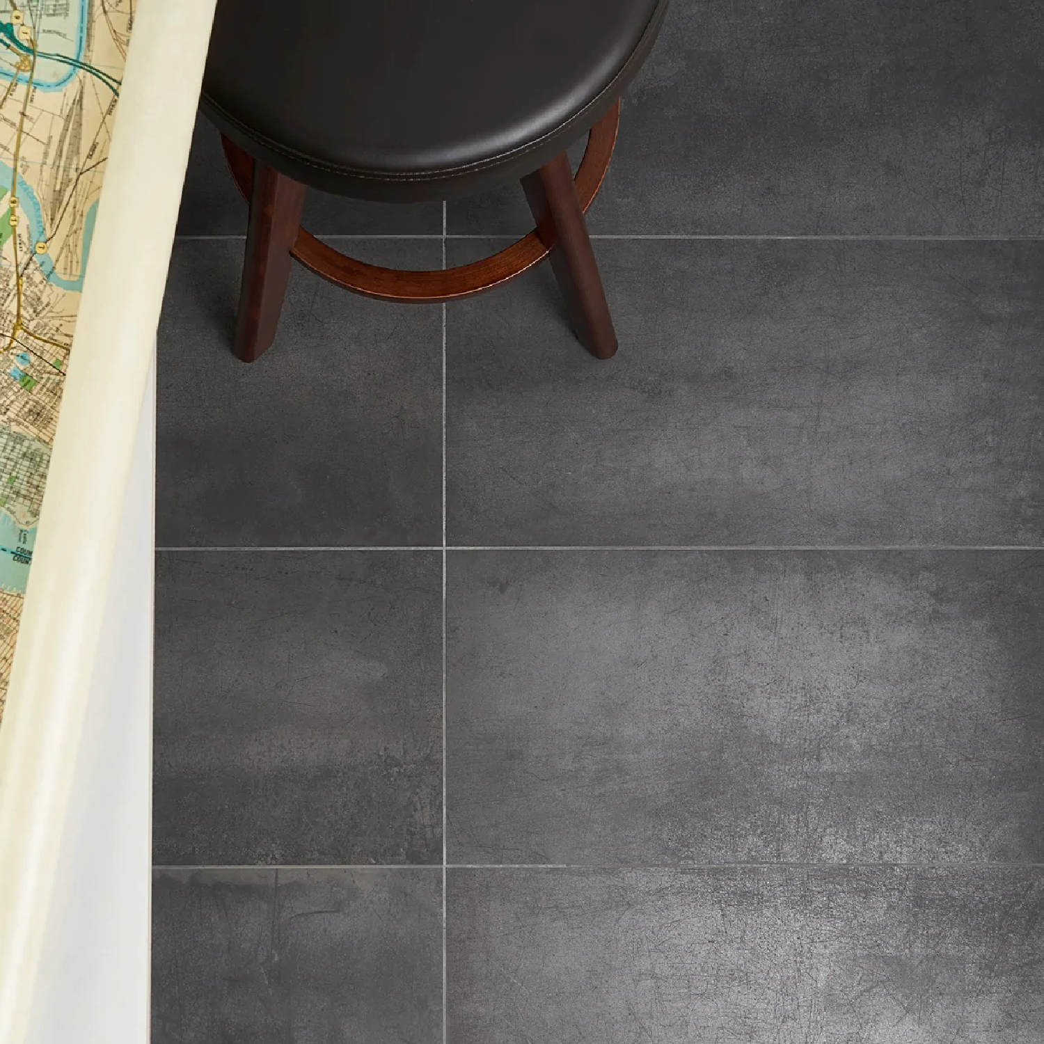 • Large Format: Charcoal black tiles in 12" x 24" dimensions for a seamless and expansive look.