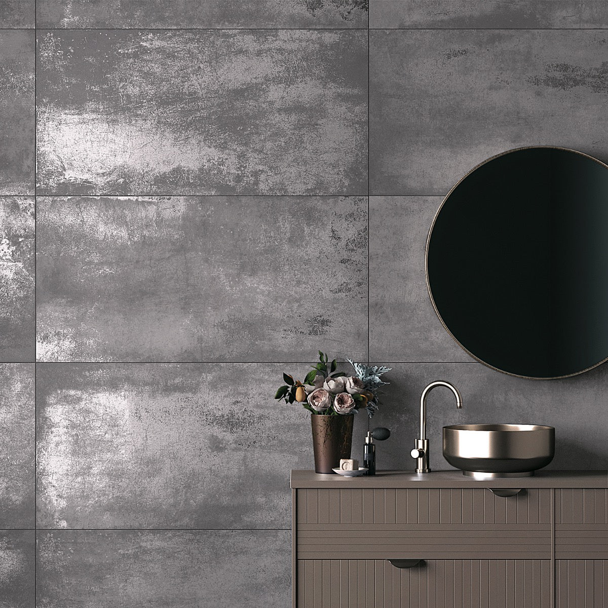 The Bond Venom Charcoal Matte Tile offers a contemporary industrial design with a striking metallic sheen and opaque oxidation. Perfect for both residential and commercial spaces, this large-format tile enhances any interior with its bold and intimate aesthetic.