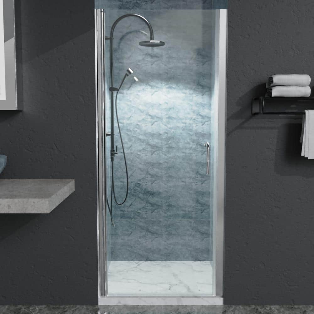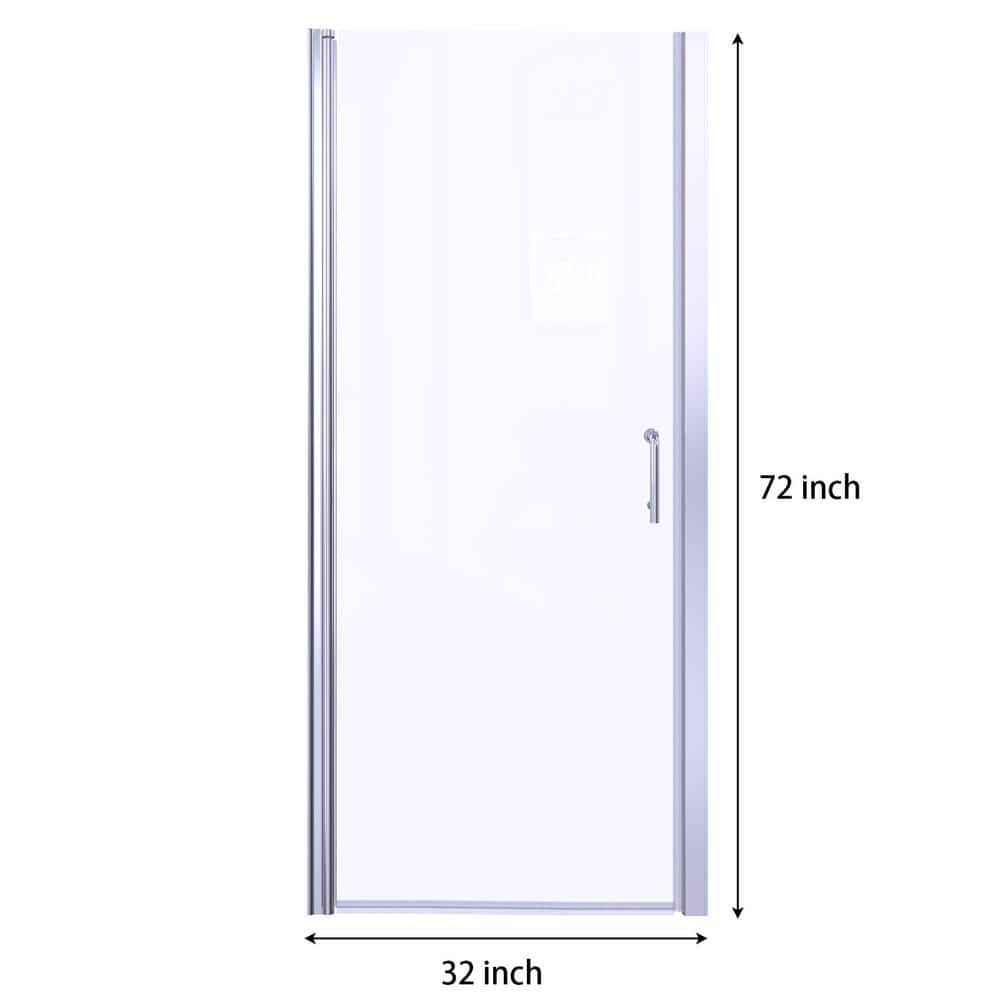 Boosicavelly 32 In. W x 72 In. H Pivot Semi-Frameless Shower Door in Chrome with Clear Glass
