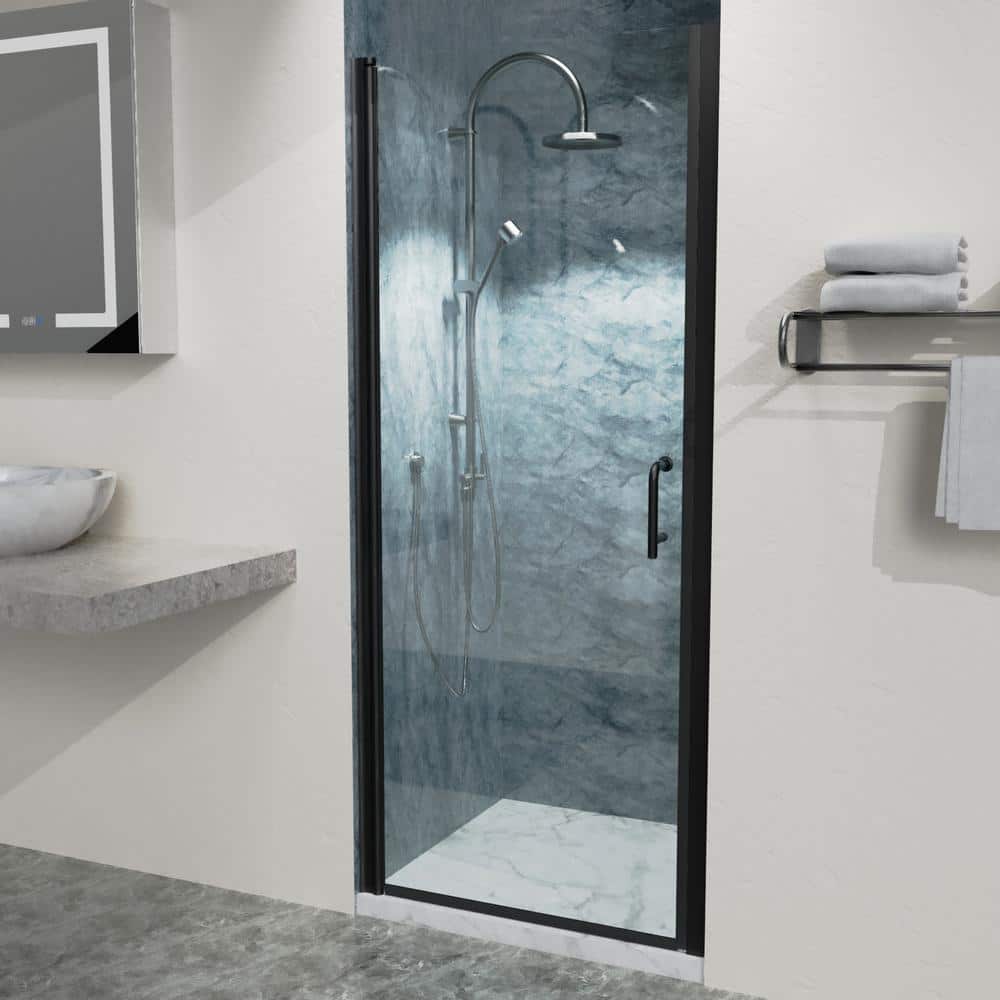 Upgrade your bathroom with Boosicavelly's 32-inch Semi-Frameless Shower Door, featuring a stylish matte black aluminum frame and clear tempered glass. The pivot design offers easy access, while the durable materials ensure safety and longevity. Perfect for creating a modern, open feel in any bathroom setting.