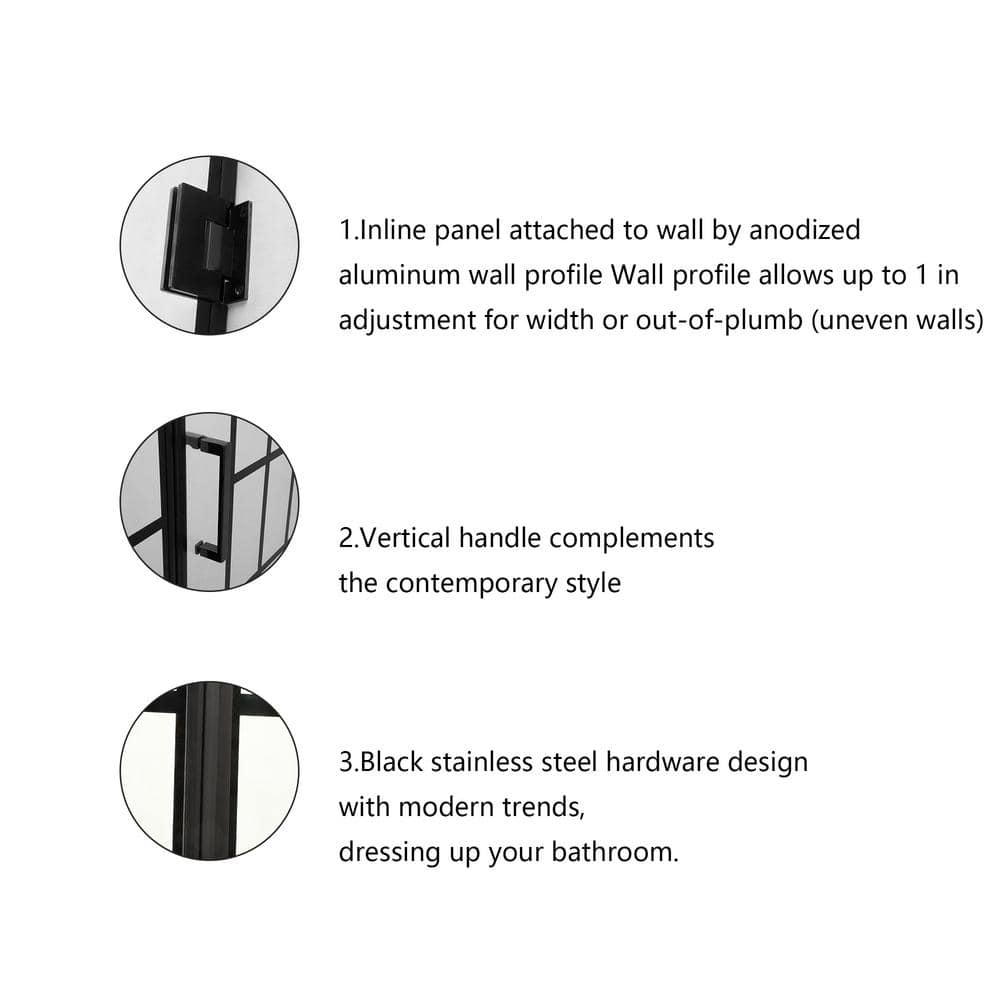 Enhance your bathroom with the Boosicavelly Pivot Framed Shower Door in Matte Black. This versatile piece combines modern aesthetics with practical functionality, featuring sturdy tempered glass for long-lasting use and an aluminum frame that resists corrosion. Its sleek design offers seamless integration into any contemporary bath space.