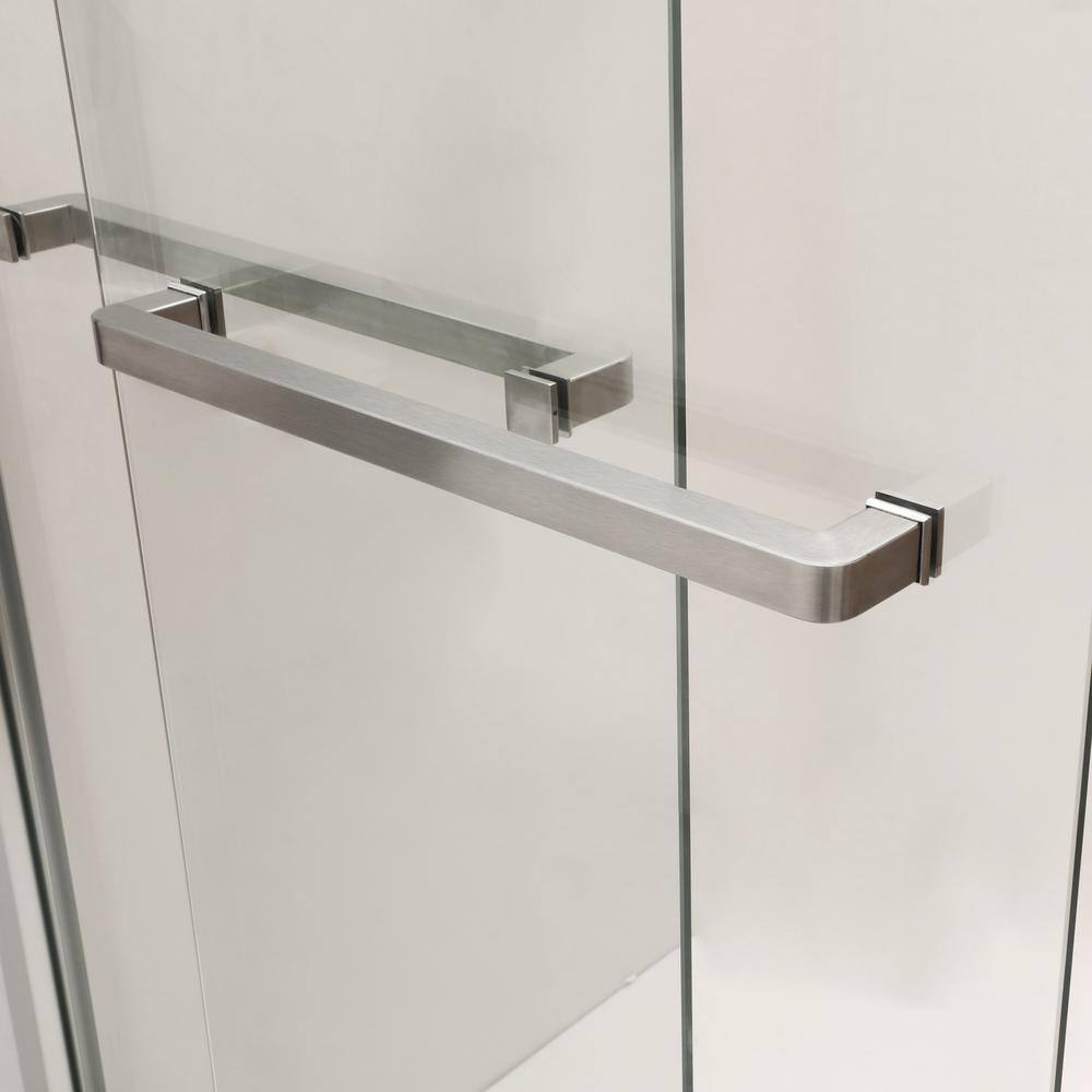 The Boosicavelly Double Sliding Shower Door transcends conventional shower design, imbuing any bathroom sanctuary with unfettered luxury. Its semi-frameless allure creates an expansive visual delight, accentuating the clarity and light of the tempered glass. The brushed nickel finish is not merely a functional choice but a statement of sleek sophistication, pairing beautifully with various design aesthetics. Envision this masterpiece as the focal point of a serene and stylish bath retreat, elevating everyday rituals to moments of sheer sophistication.