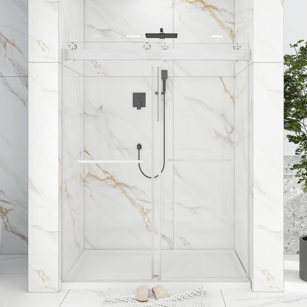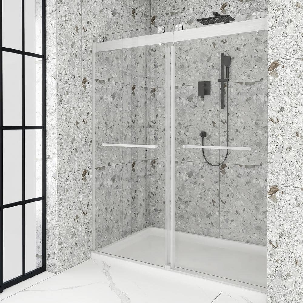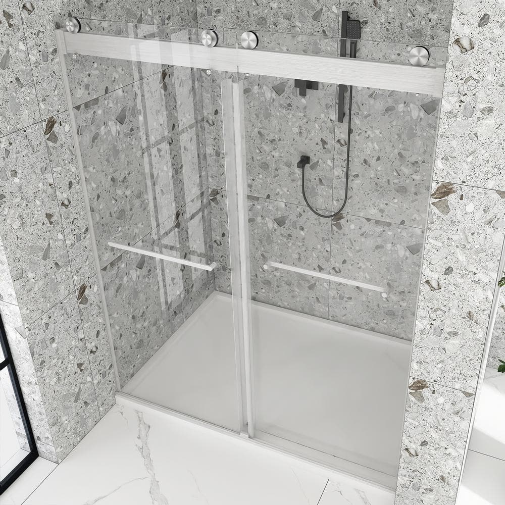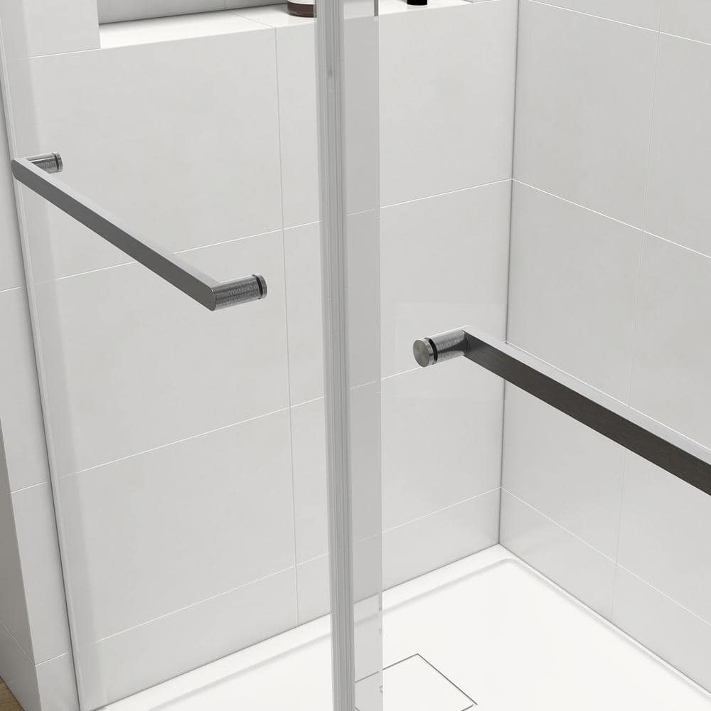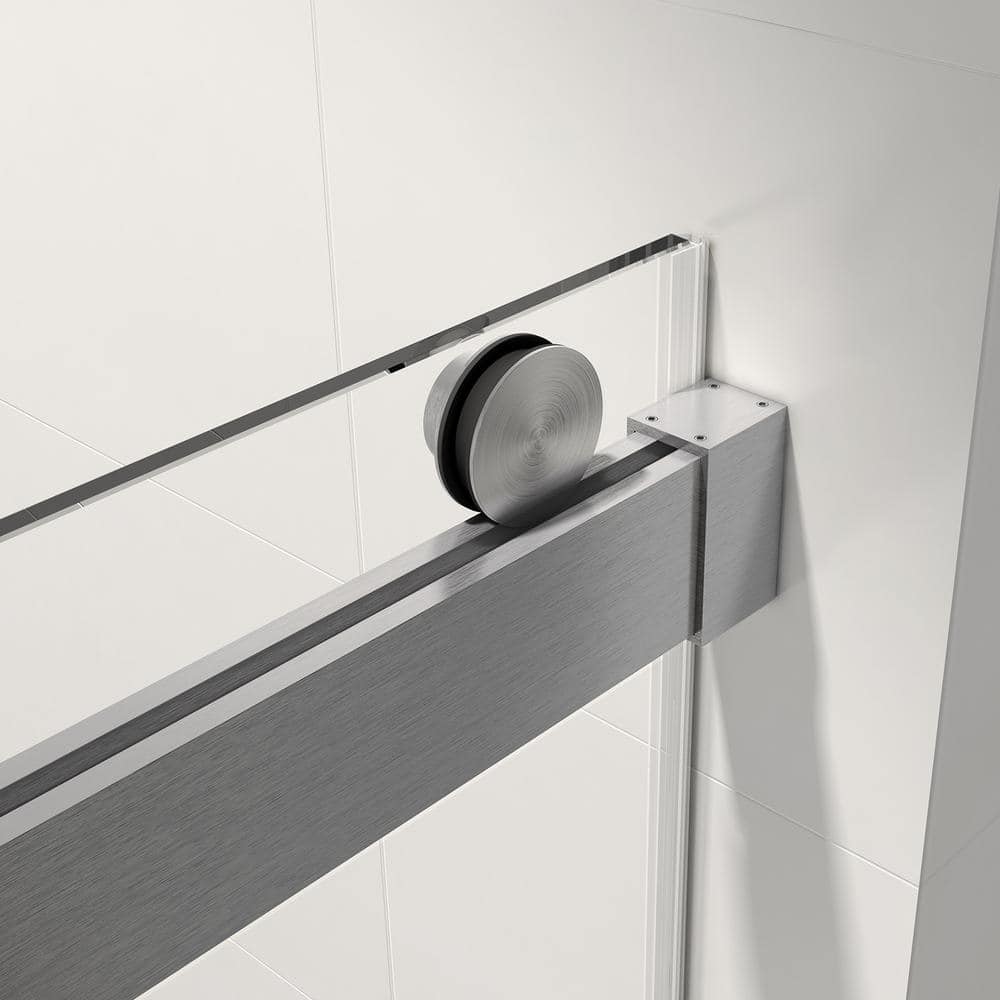 Upgrade your bathroom with the Boosicavelly Frameless Sliding Shower Door. This sleek and modern shower door, crafted with premium tempered glass, features a noiseless, soft-closing design that adds both safety and sophistication to any home. Its brushed nickel finish and frameless construction not only amplify space but also complement a variety of decor styles.