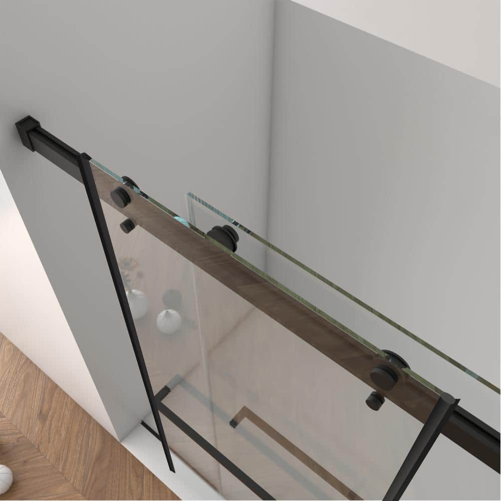 Elevate your bathroom with the Boosicavelly Double Sliding Frameless Shower Door, featuring a sleek matte black finish and premium clear glass. This door boasts high-impact laminated tempered glass for exceptional safety and durability, while its corrosion-resistant stainless steel components ensure long-lasting performance.