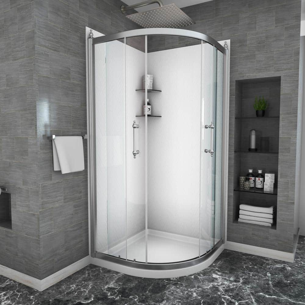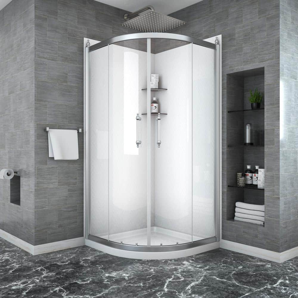 Elevate your bathroom with the Boosicavelly Double Sliding Semi-Frameless Shower Enclosure, featuring a sleek chrome finish and tempered glass. This elegantly designed corner shower maximizes space while offering smooth double sliding doors for easy access and chic style.
