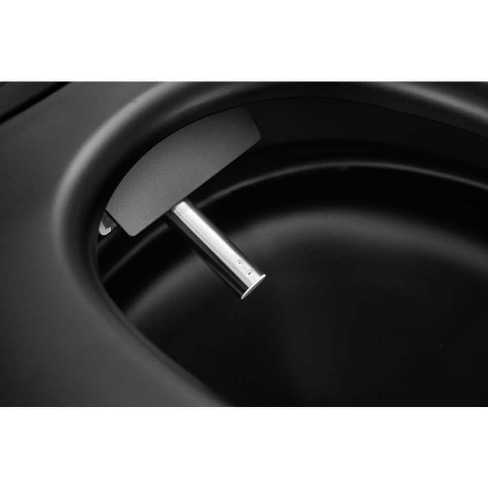 Sophisticated Design: Matte black finish with a concealed tank for a sleek, modern look.
