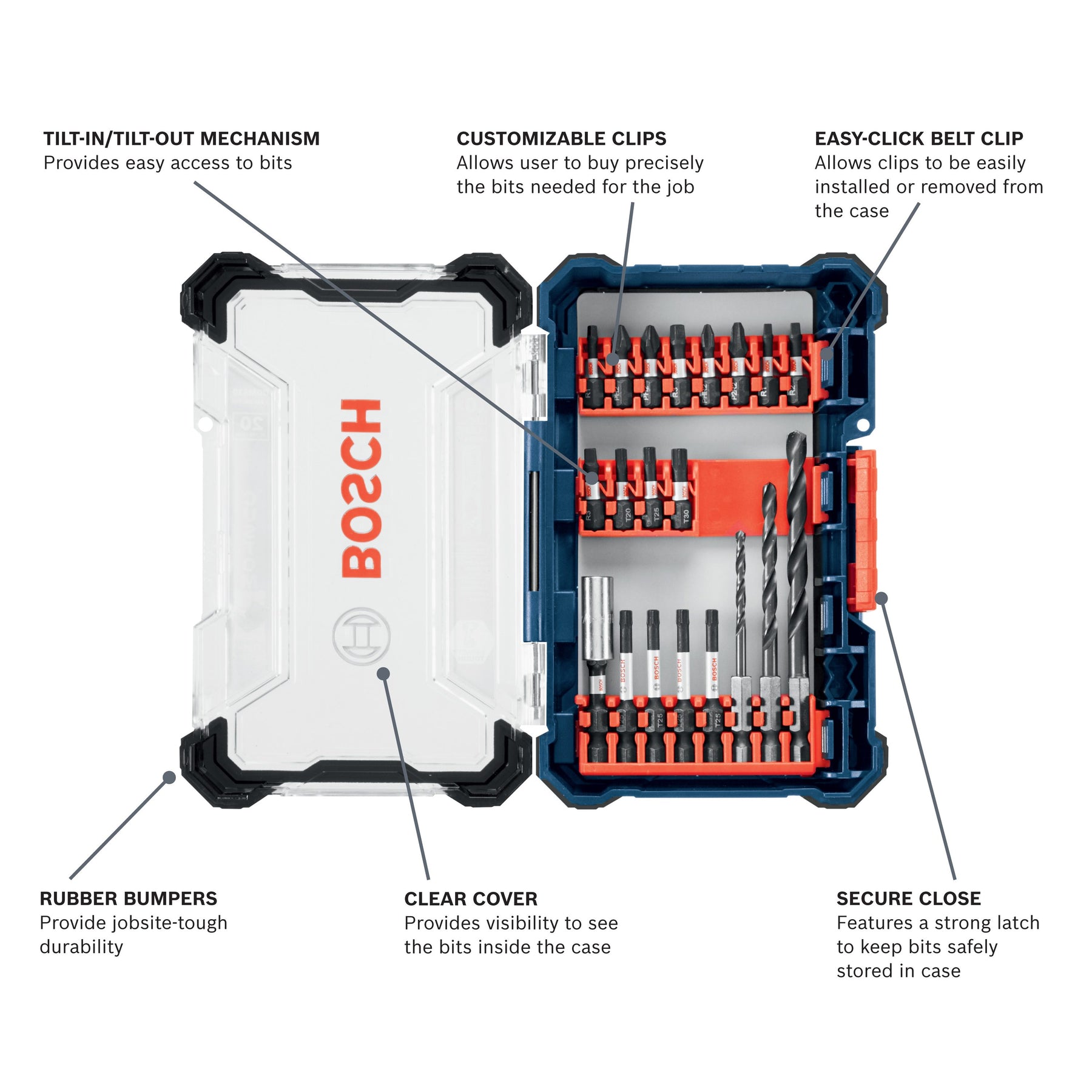 Equip your toolkit with Bosch’s Impact Tough precision—add this 20-piece custom case set to your cart today.