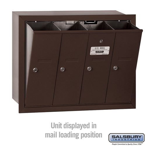 Bronze 4-Door Vertical Mailbox - Recessed Mounted - USPS Approved
