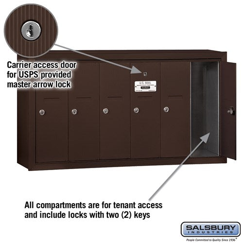 Bronze 6-Door Vertical Mailbox - Surface Mounted - USPS Approved