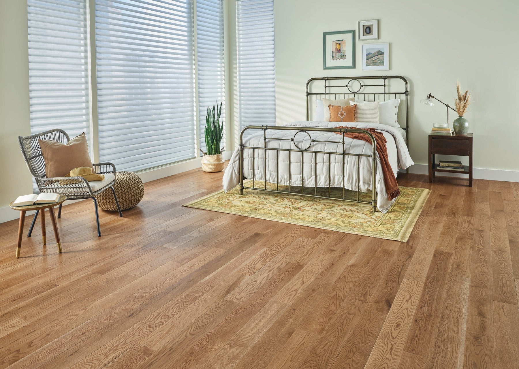 Enhance your home with Bruce's Haven Point White Oak Solid Hardwood Flooring. These planks offer a smooth, traditional finish with a medium brown color to bring timeless elegance to any space. Built for durability and refinement, they're ready for a lifetime of beauty underfoot.