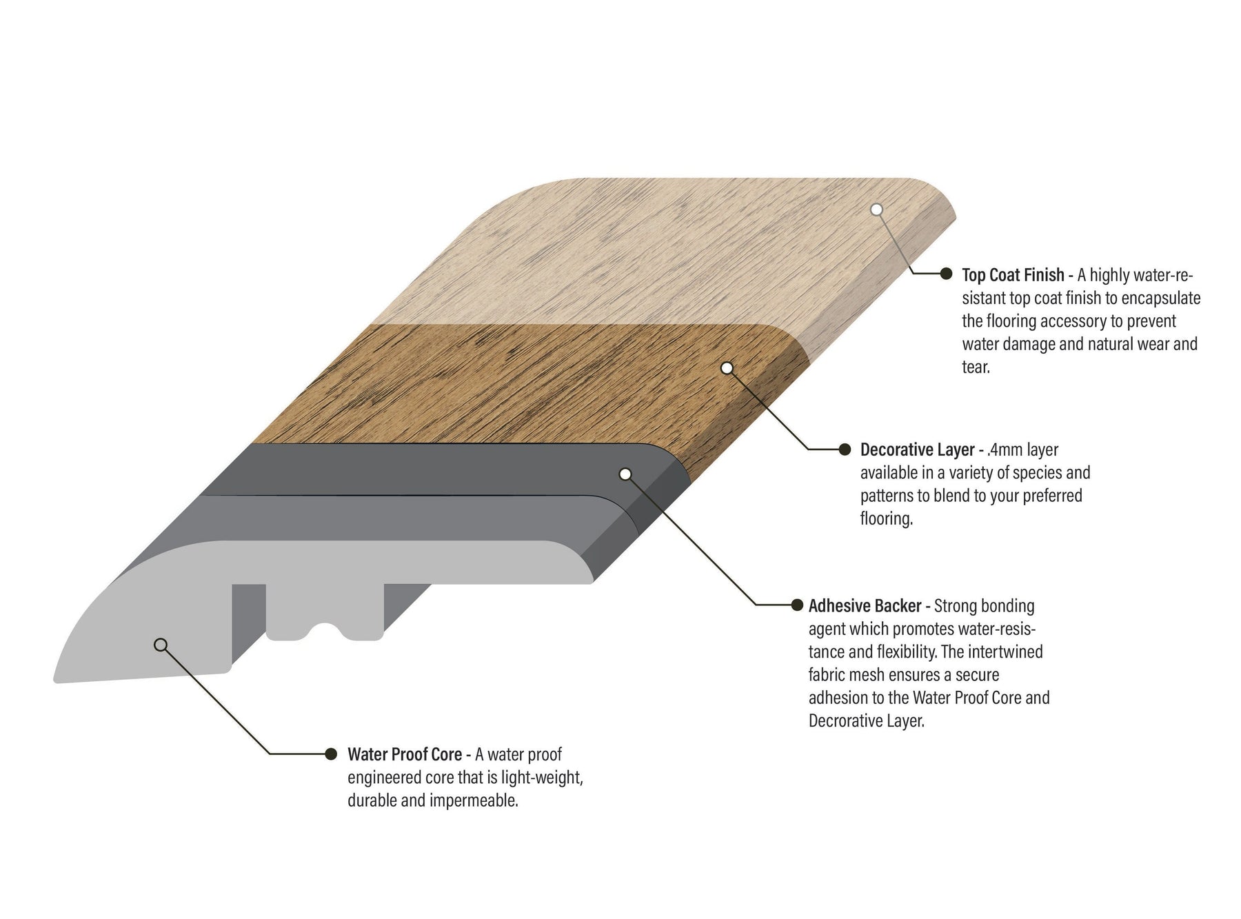 • Durable Construction: Engineered waterproof core with a decorative wood veneer layer.