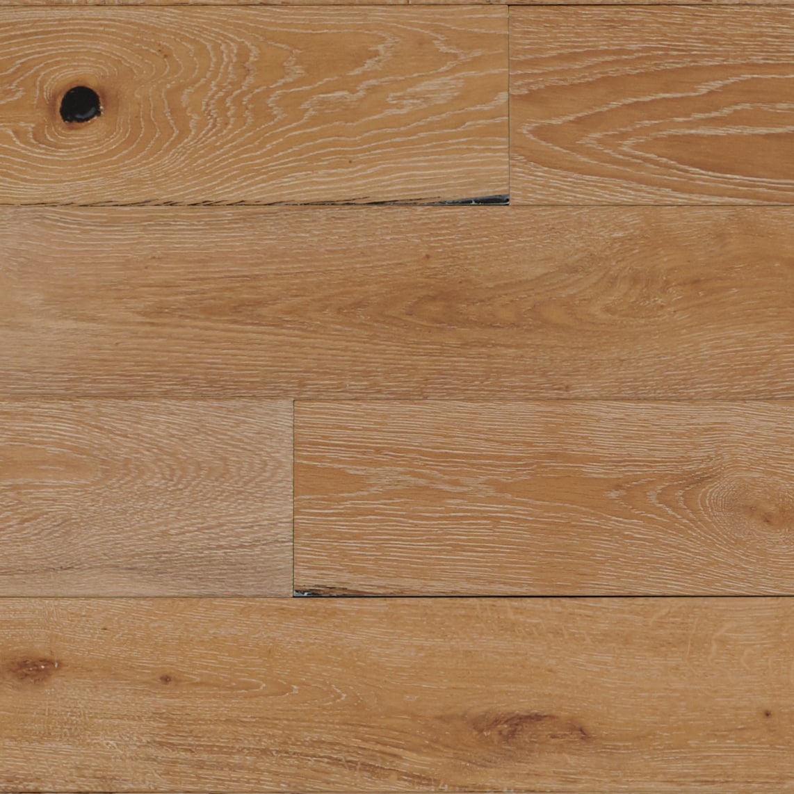 Q: How does the wirebrushed texture enhance the flooring? A: The wirebrushed texture not only provides a crafted, tactile feel but also helps hide small dents and scratches, maintaining the flooring's appearance over time.