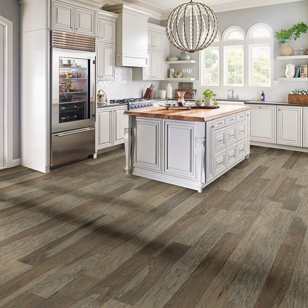 Envision your home exuding warmth and sophistication with Bruce's Soft Brown Hickory Flooring. The hand-scraped texture provides a beautiful tactile element, enhancing the inherent charm of hickory, while the neutral soft brown hue effortlessly complements any design palette. Imagine styling it with plush area rugs and sleek modern furniture for a harmonious blend of rustic and contemporary. This flooring isn't just a choice—it's an invitation to luxurious living, enveloping your space in timeless elegance.