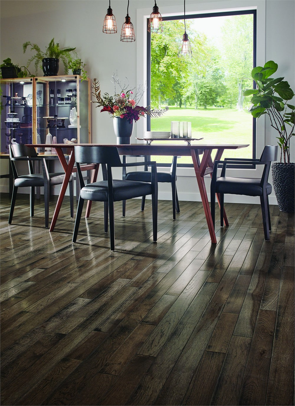 Experience the timeless elegance of Bruce's Shady Grove Hickory Solid Hardwood Flooring. Known for its durability and exquisite craftsmanship, this flooring is created from premium Appalachian Hickory, featuring a distinct double-stained finish. Perfect for bringing a touch of natural beauty and sophistication to any home interior.