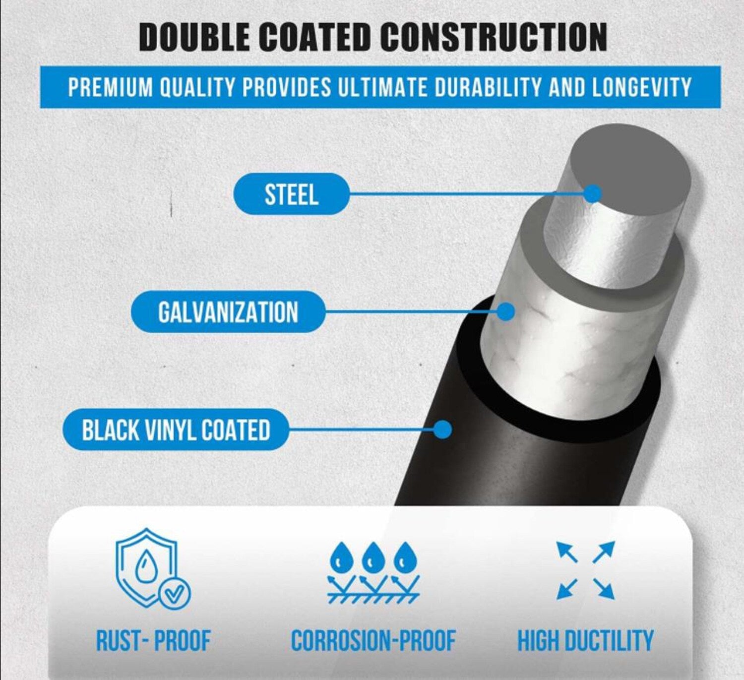 Material: Black PVC coated steel for enhanced durability and rust resistance.