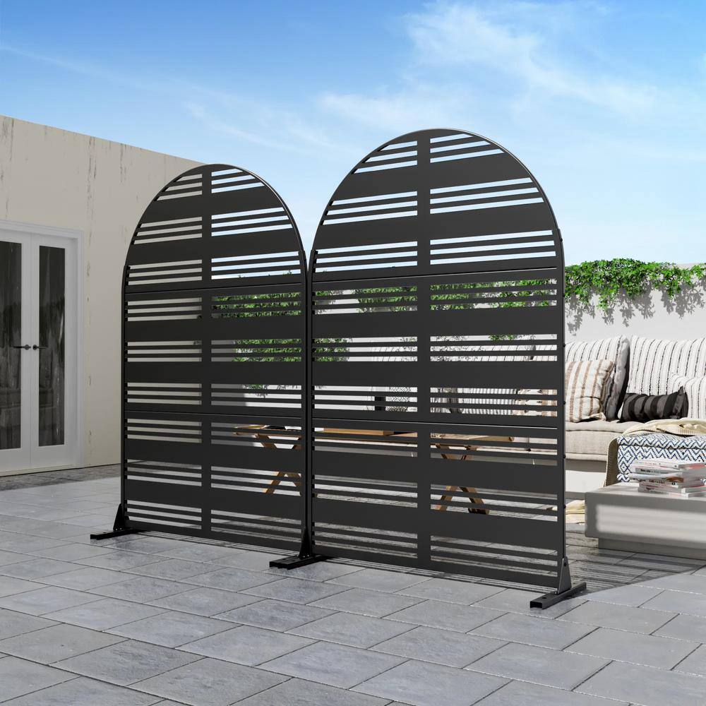Infuse your outdoor sanctuary with sophistication using the Cadeninc Freestanding Metal Privacy Screen. The arching lines and sleek black finish create a dramatic backdrop, transforming patios into chic enclaves that beckon relaxation. Pair with cascading greenery or vibrant flowers to highlight its structural beauty—the perfect balance of elegance and privacy. Make it a centerpiece and embrace the seamless blend of form and function for ultimate luxurious living.