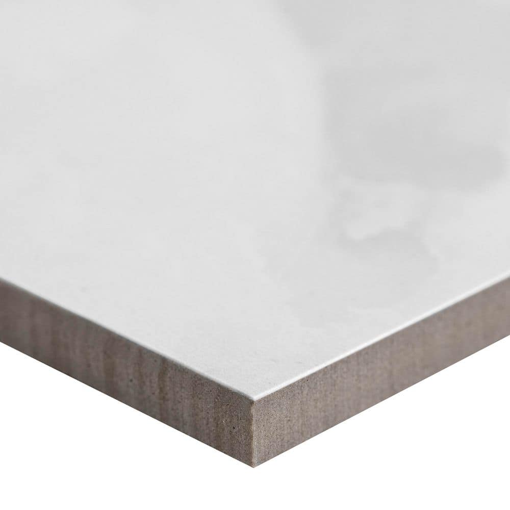 A cool white, marble-look porcelain tile with polished finish for floors and walls. Rectified edges enable thin grout lines for a sleek, modern install, and impervious, frost-resistant construction suits indoor or outdoor residential and commercial spaces.
