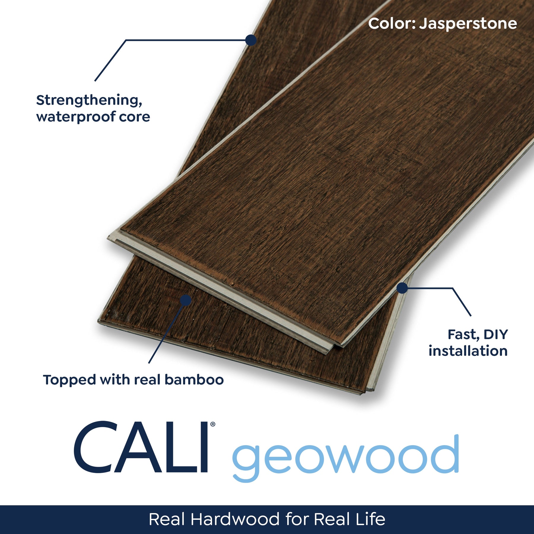 Upgrade to Jasperstone GeoWood and enjoy the beauty of real bamboo with waterproof confidence and effortless installation.