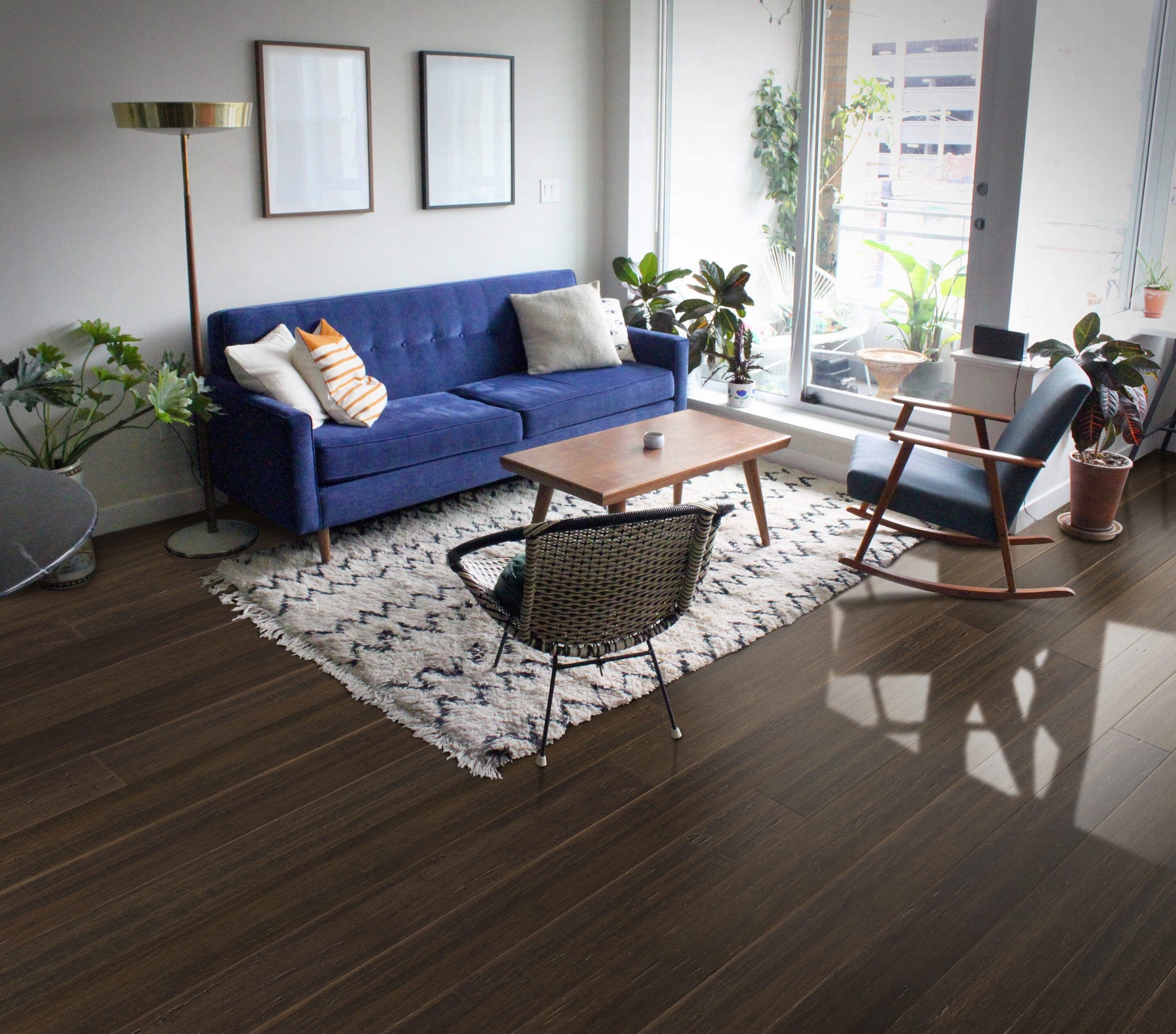 Jasperstone’s dark, richly grained bamboo brings a sultry, grounded elegance to modern living spaces. The distressed texture adds artisanal depth, pairing beautifully with brass accents and soft, tonal textiles. Float it through open-concept rooms for seamless flow, then layer with sculptural furniture to let the low-gloss sheen quietly glow. A waterproof core and resilient finish make it as practical as it is decadent—an essential foundation for refined, livable luxury.