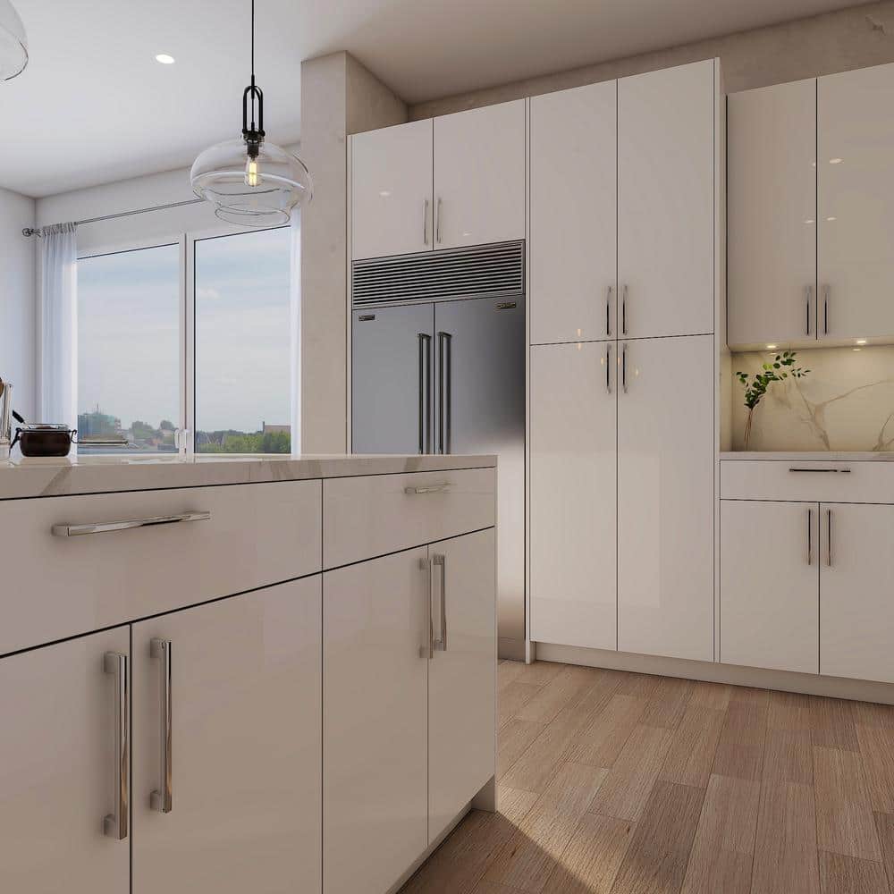 Transform your culinary workspace into a dream of modern luxury with the Cambridge Radiance Kitchen Cabinet. The smooth, glossy finish reflects light beautifully, imbuing your kitchen with a radiant shine that draws the eye. Picture these cabinets flowing seamlessly throughout the room, encapsulating your space in sophistication. Consider integrating pops of color with kitchen accents or hardware, enhancing the pristine canvas they create. A vital element in the art of sleek, stylish living, this cabinet is more than a functional asset—it's a style statement.