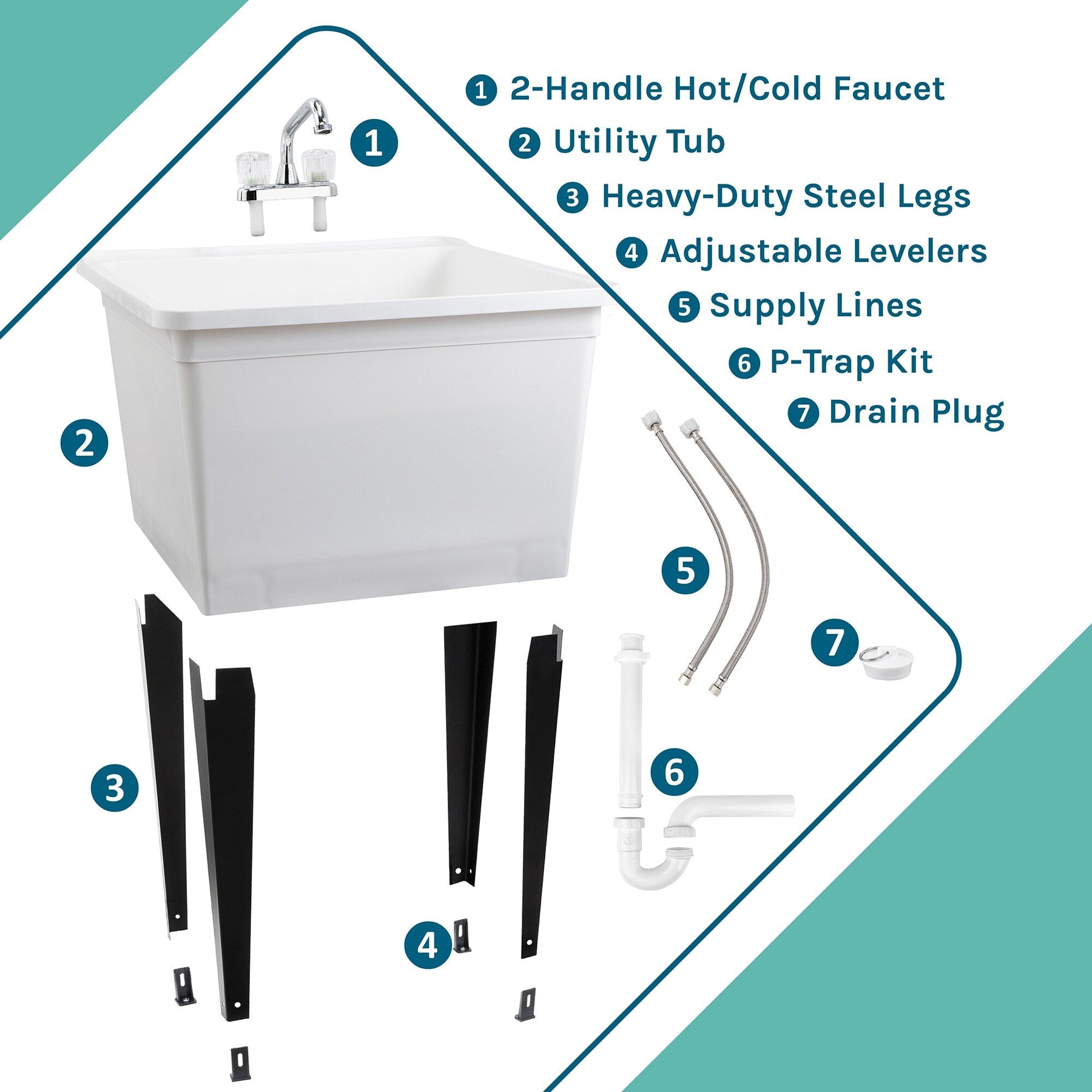 - Comprehensive Kit: Includes utility tub, faucet, drain stopper, supply lines, p-trap, and all necessary hardware.