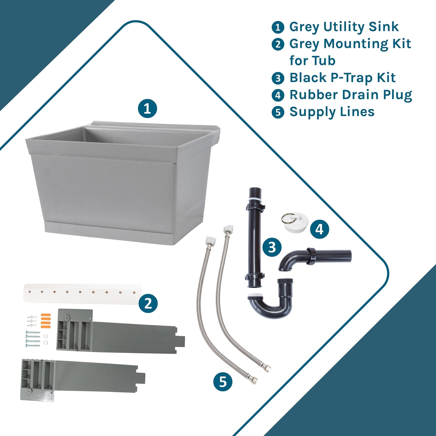 Cambridge Resources 23.5" Gray Wall Mount Utility Tub with Drain