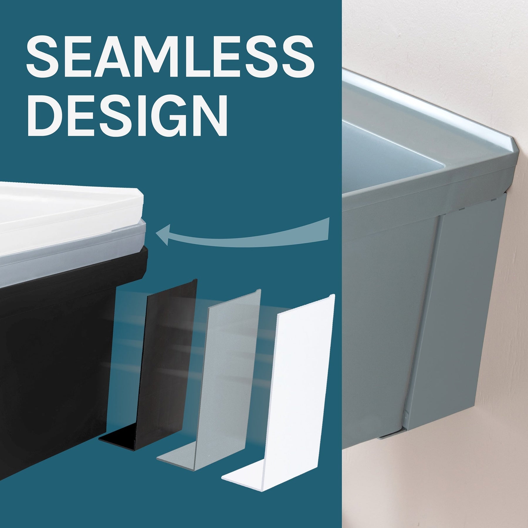 This elegant wall-mounted tub transforms any utility space into a chic and functional area. The seamless gray design lends itself effortlessly to modern aesthetics, offering a sleek functionality that's as stylish as it is practical. Pair it with minimalistic fixtures in a neutral-toned space to create a clean and sophisticated look. This utility tub is not just a useful addition; it elevates the standard for everyday practicality in luxurious living.
