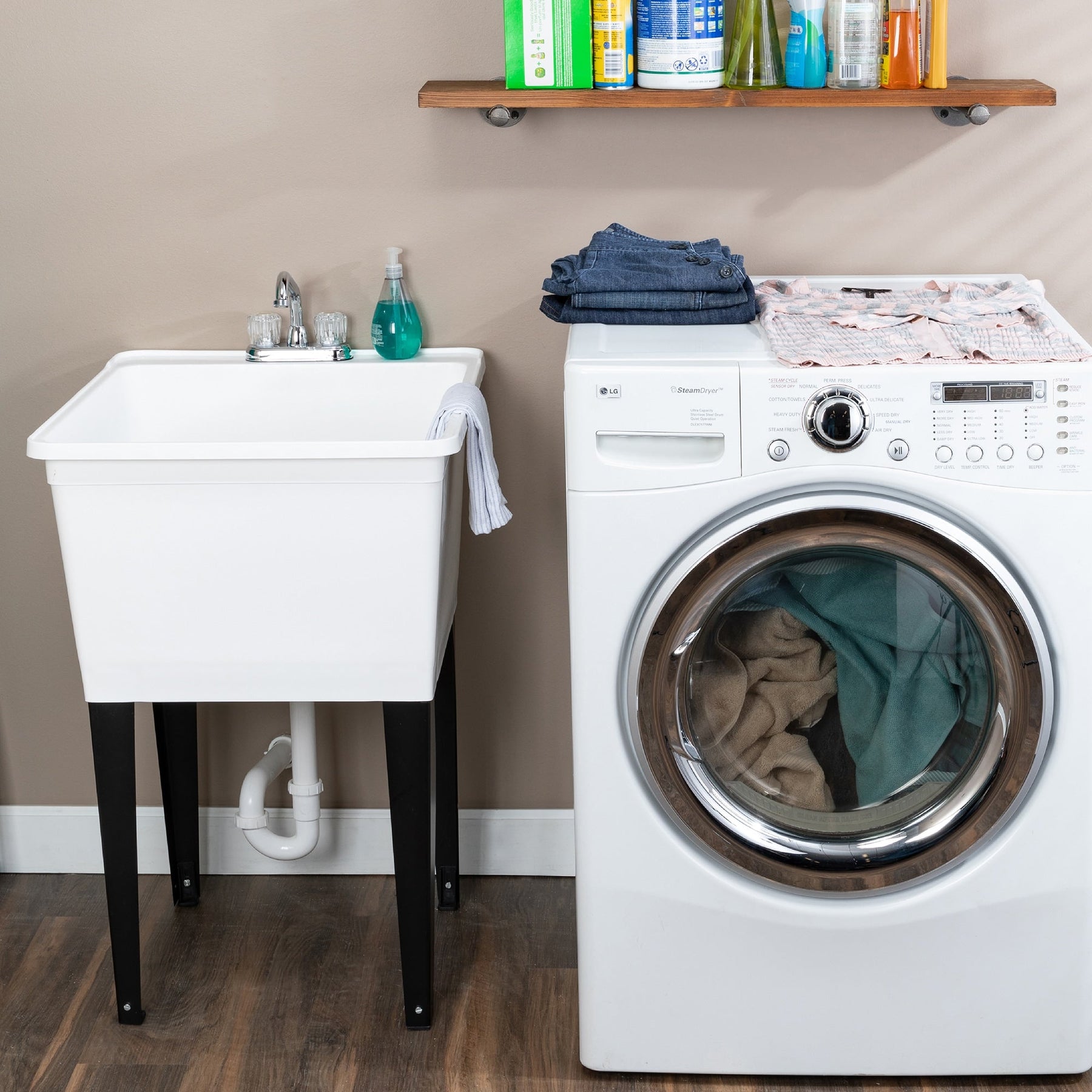 Cambridge Resources White 1-Basin Utility Tub with Drain and Faucet