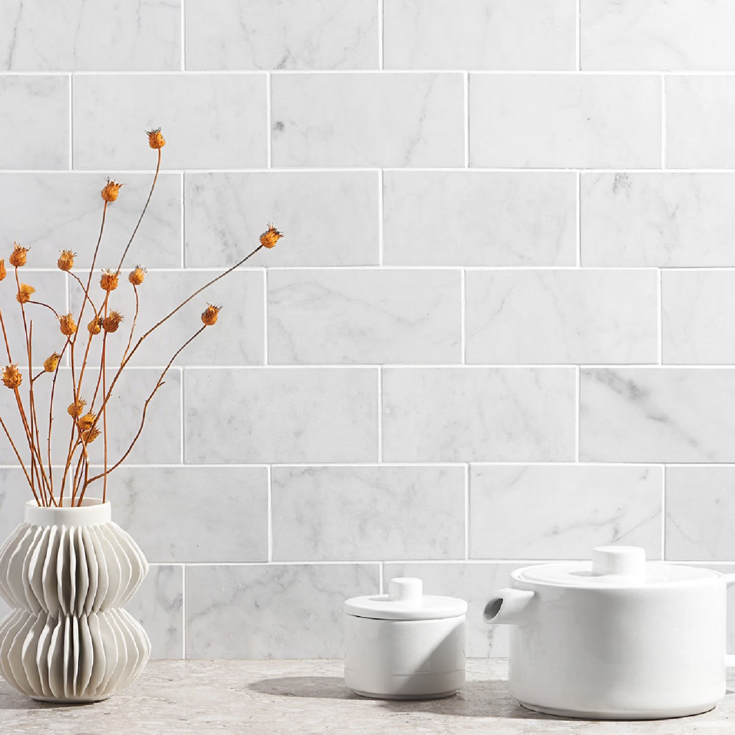 - Versatile Design: Whether you're aiming for a classic subway tile look or a modern checkerboard pattern, our Carrara White marble tile offers endless design possibilities to suit any aesthetic.