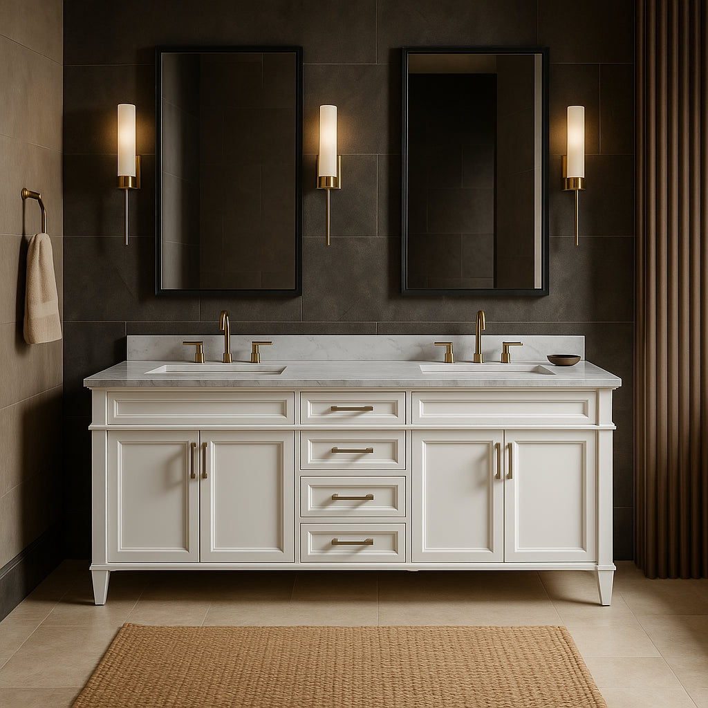 | Vanity Features | Concealed Hinges, Dual Hardware, Predrilled, Soft Close Doors, Soft Close Drawers, With Electrical Outlet |