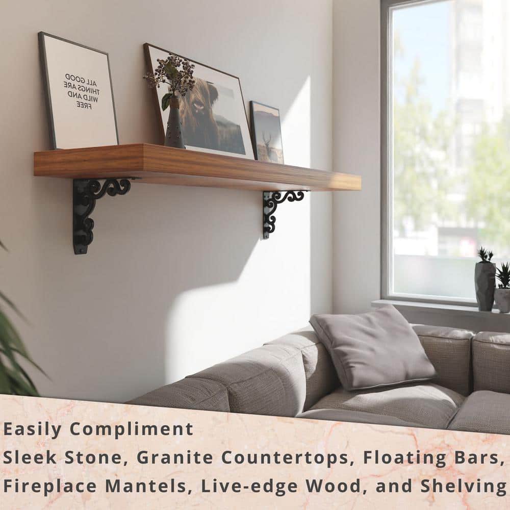 Transform your environment with the exquisite Charleston Shelf Brackets that redefine ordinary shelving. Their intricately designed nature-inspired pattern adds an element of art to functionality, creating a seamless blend of support and style. Perfectly frame your rustic or industrial-themed spaces by pairing these brackets with reclaimed wood for shelves that tell a story of both strength and aesthetic beauty. Essential for luxurious living, these brackets not only hold your cherished pieces but elevate the entire room into a curated masterpiece.