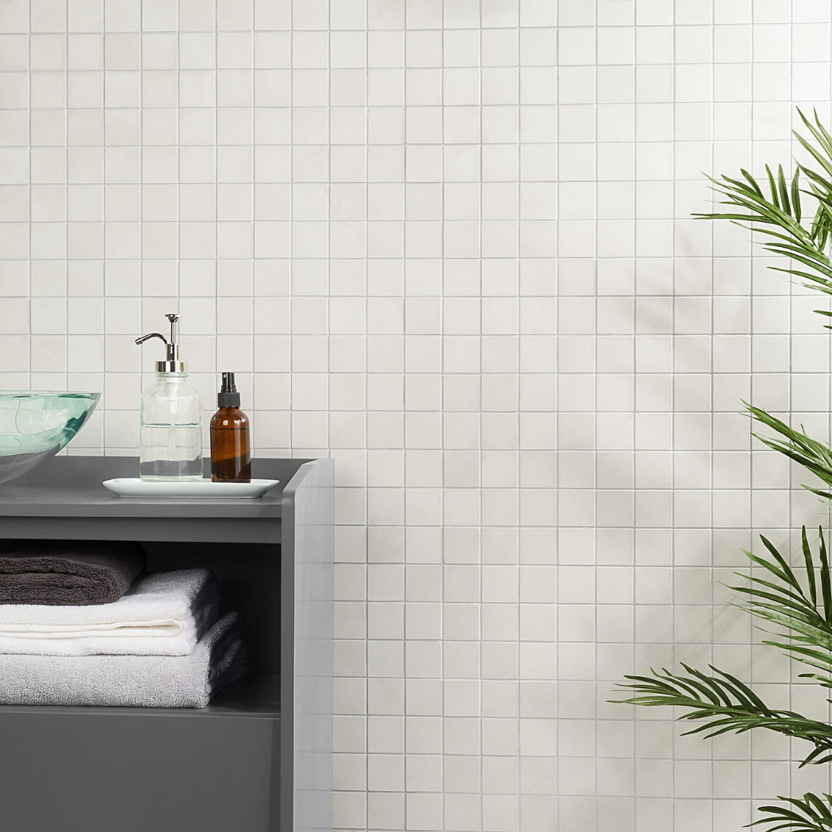 Transform your space with the Clay Calm White Porcelain Mosaic, a perfect blend of style and durability.