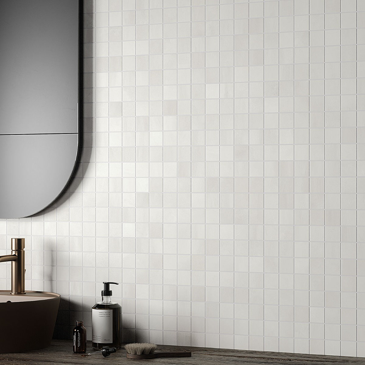 The Clay Calm White 2x2 Matte Porcelain Mosaic combines a soothing white hue with a matte finish, offering a contemporary concrete look. Made from durable porcelain, it is perfect for various applications including walls, floors, and backsplashes.