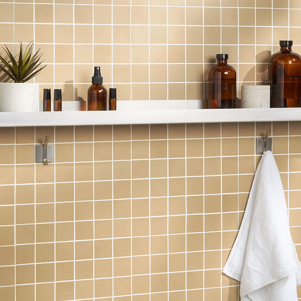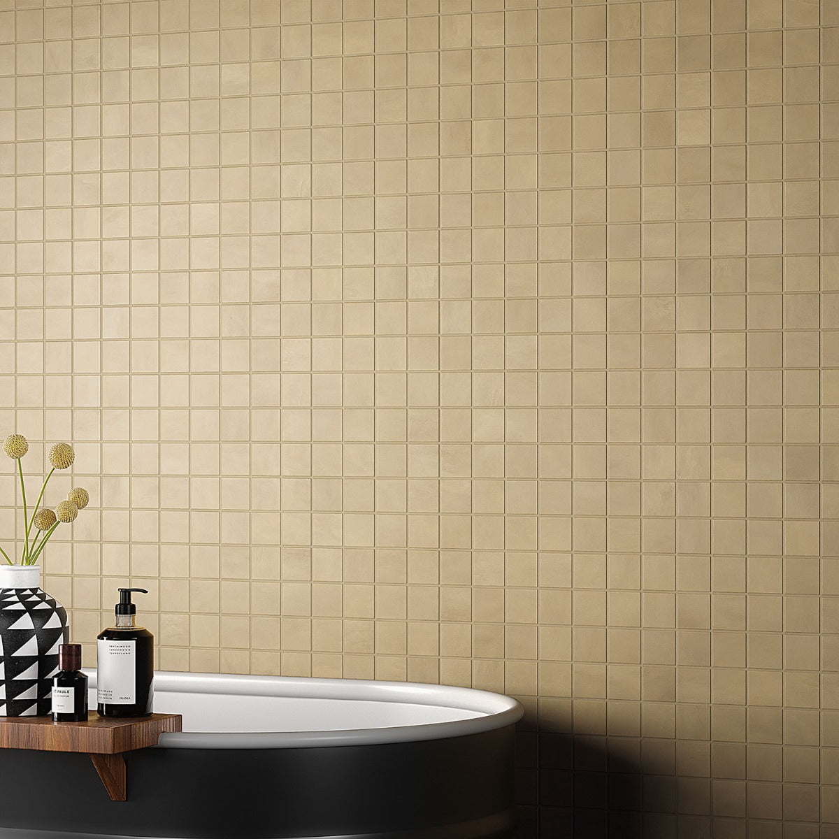 The Clay Glee Gold Mosaic Tile transforms interiors with its warm, golden tones and modern matte finish. Its scaled-down squares create a refined texture, perfect for accent walls or stylish flooring. Pair it with neutral tones or bold accents to highlight its earthy elegance. This tile is a testament to sustainable luxury, blending beauty with eco-conscious design.